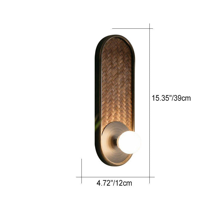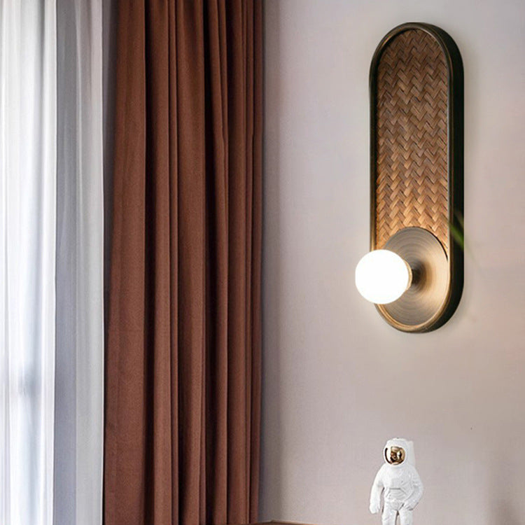 مصباح حائط خشبي زجاجي بيضاوي ياباني تقليدي لغرفة المعيشة، مزود بمصباح واحد