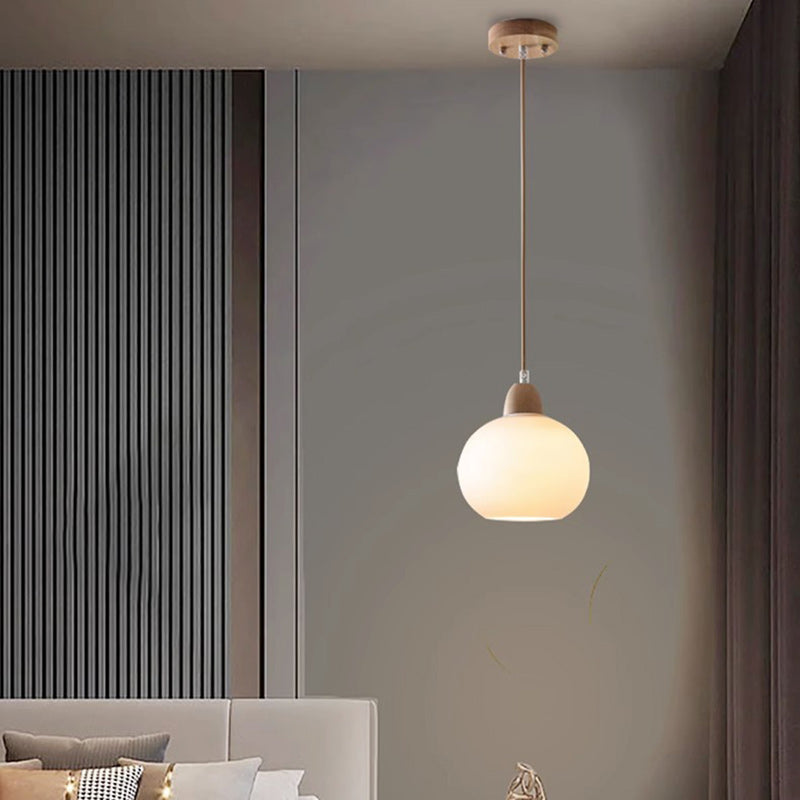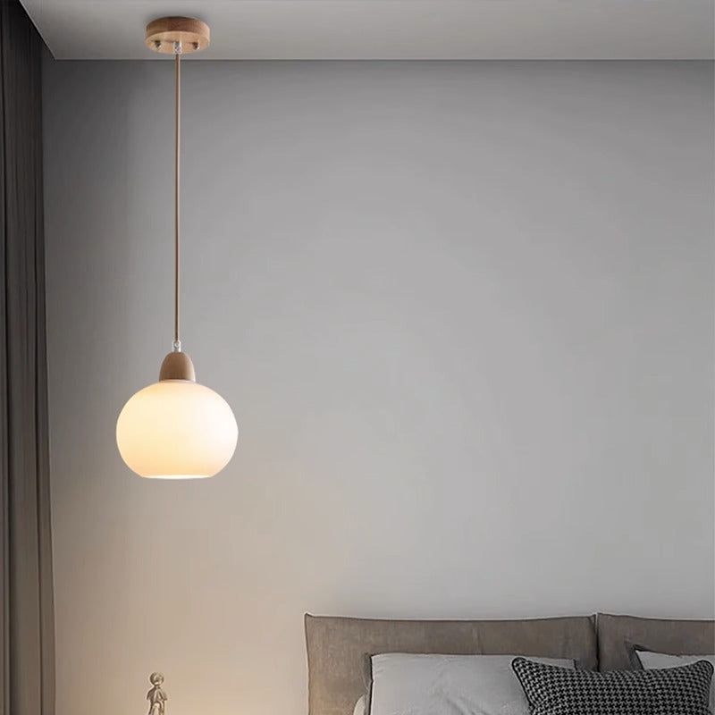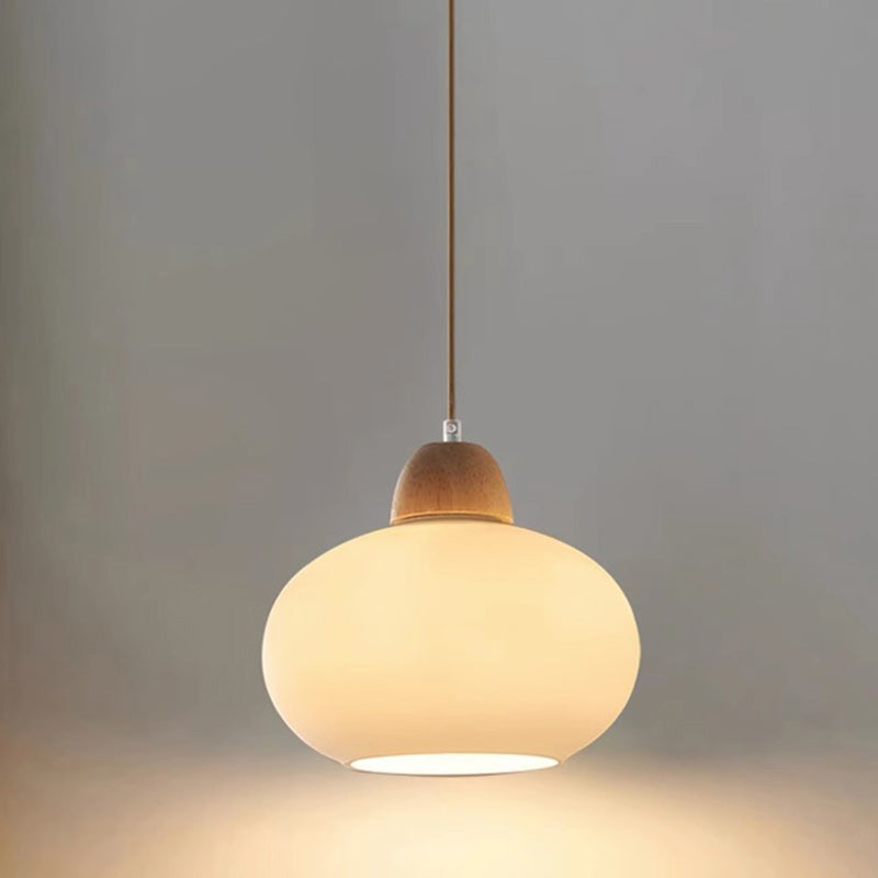 مصباح معلق ياباني تقليدي بيضاوي الشكل مصنوع من الخشب والزجاج، مزود بمصباح واحد لغرفة المعيشة