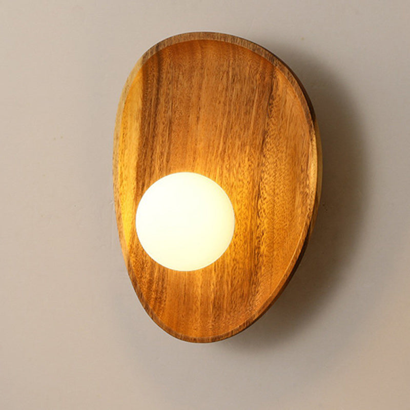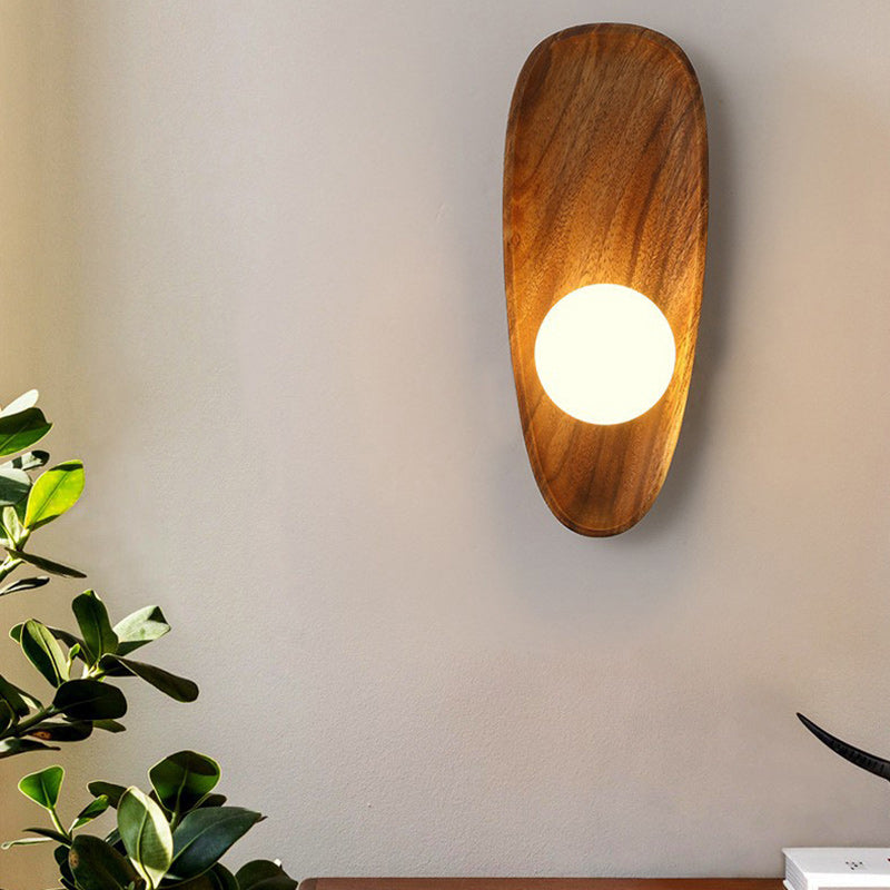 مصباح حائط LED خشبي زجاجي بيضاوي ياباني تقليدي لغرفة المعيشة