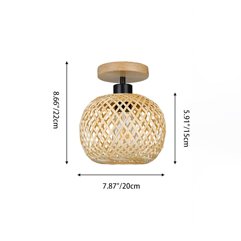 مصباح سقف ياباني تقليدي بيضاوي الشكل مصنوع من الخشب والحديد والخيزران، مزود بمصباح واحد، مثبت بشكل شبه مسطح، لغرفة المعيشة