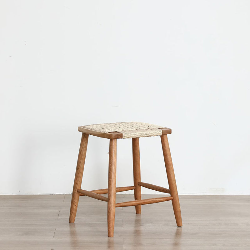 Traditional Japanese Square Braided Rope Seat Solid Wood Dining Chair Footrest For Dining Room