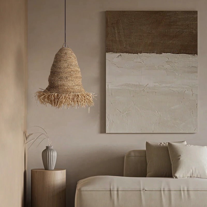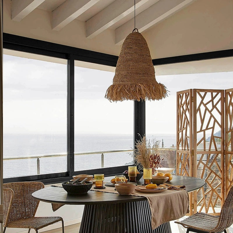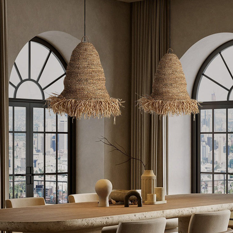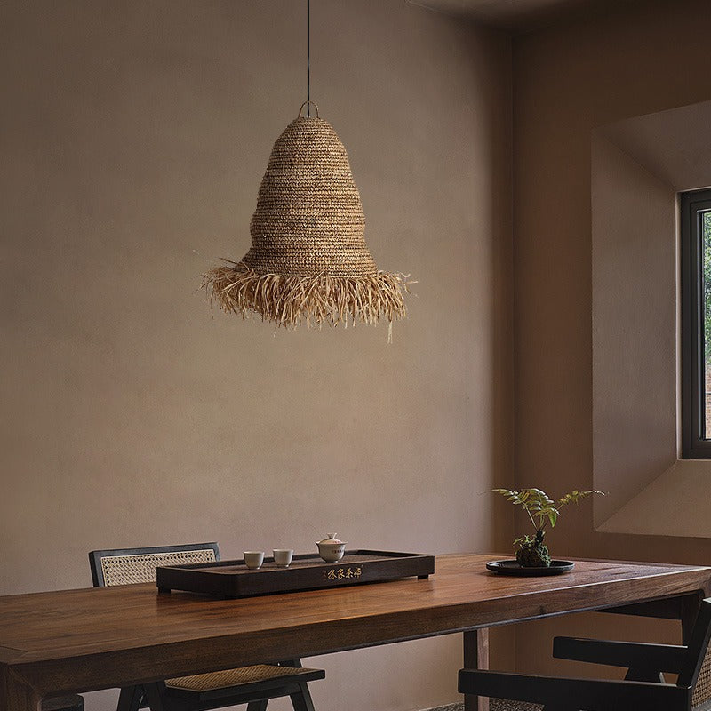 مصباح معلق بإضاءة واحدة على طراز قبعة القش اليابانية التقليدية لغرفة الطعام