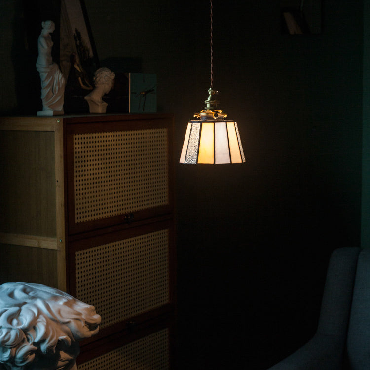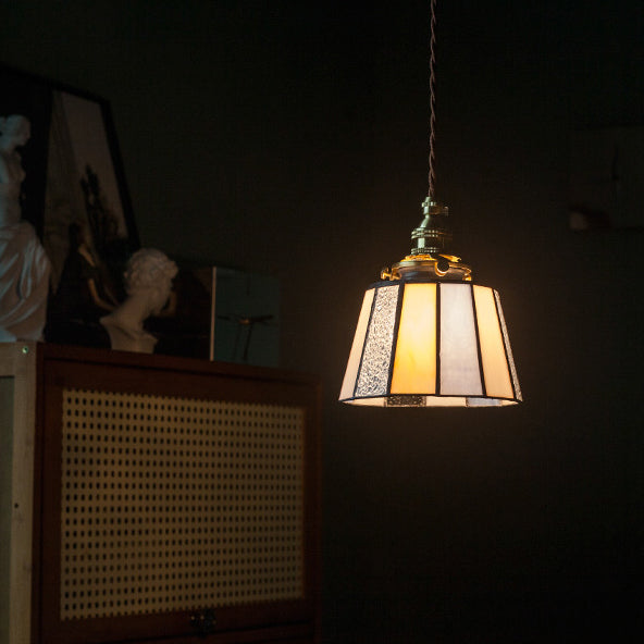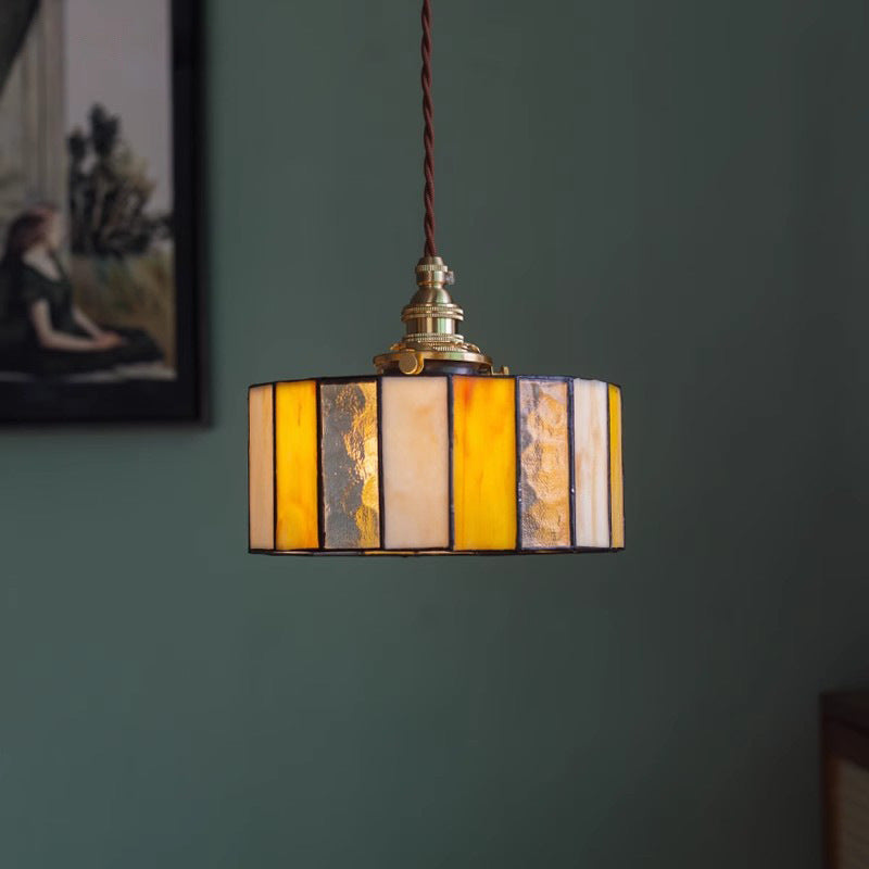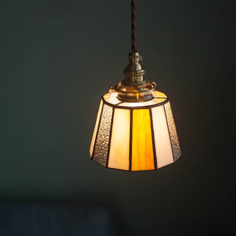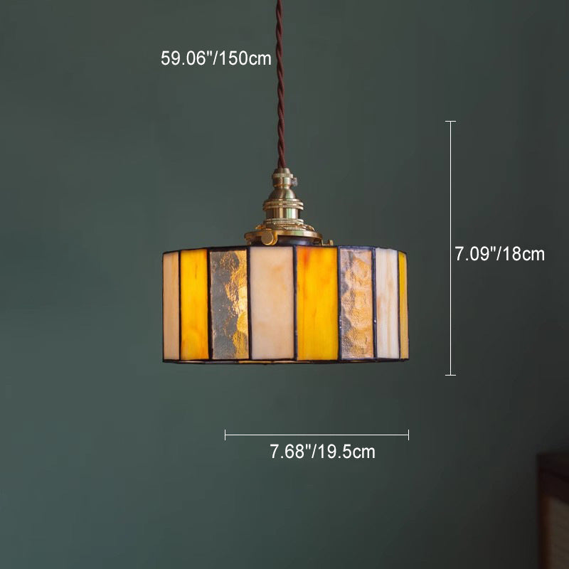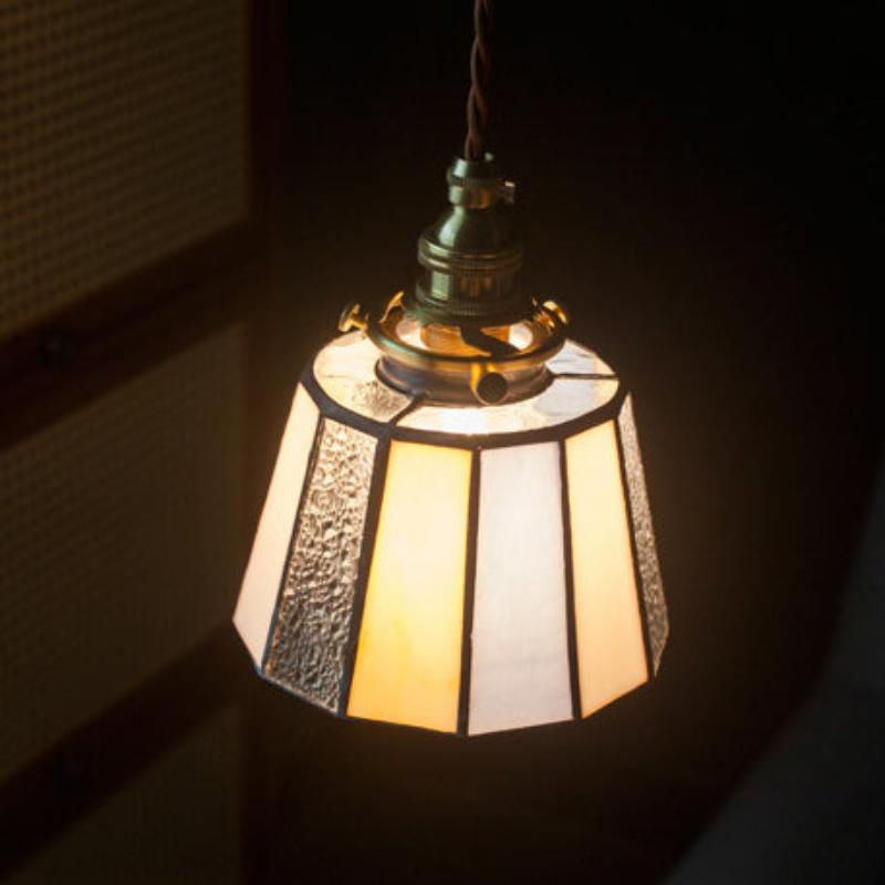 مصباح معلق ياباني تقليدي مخطط من الحديد والزجاج، 1 مصباح لغرفة المعيشة