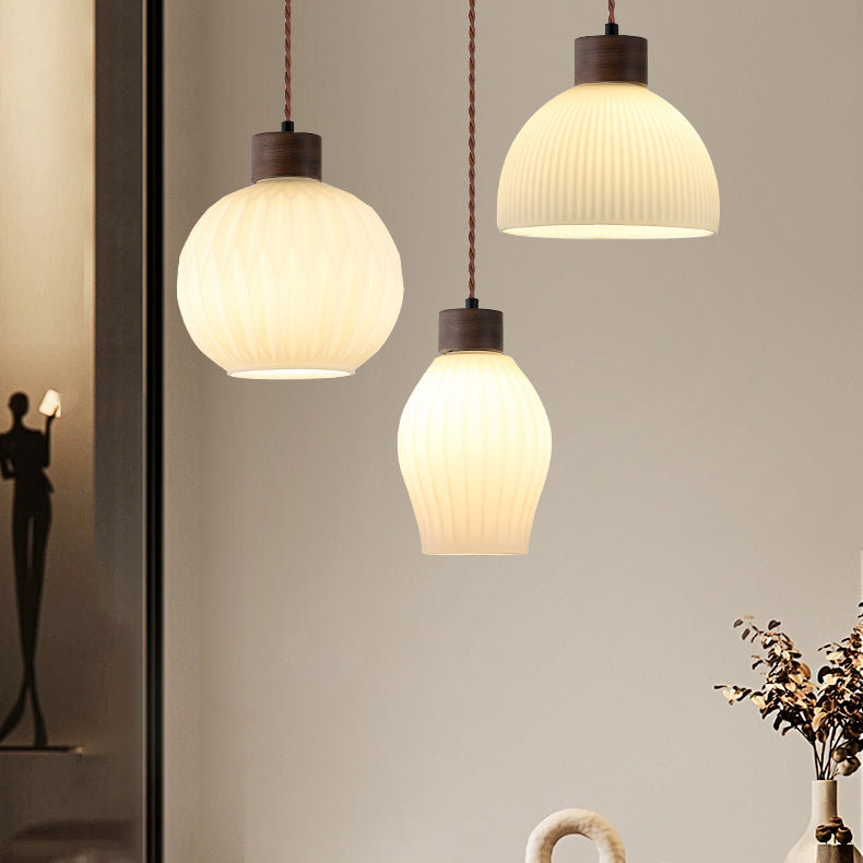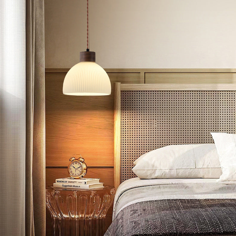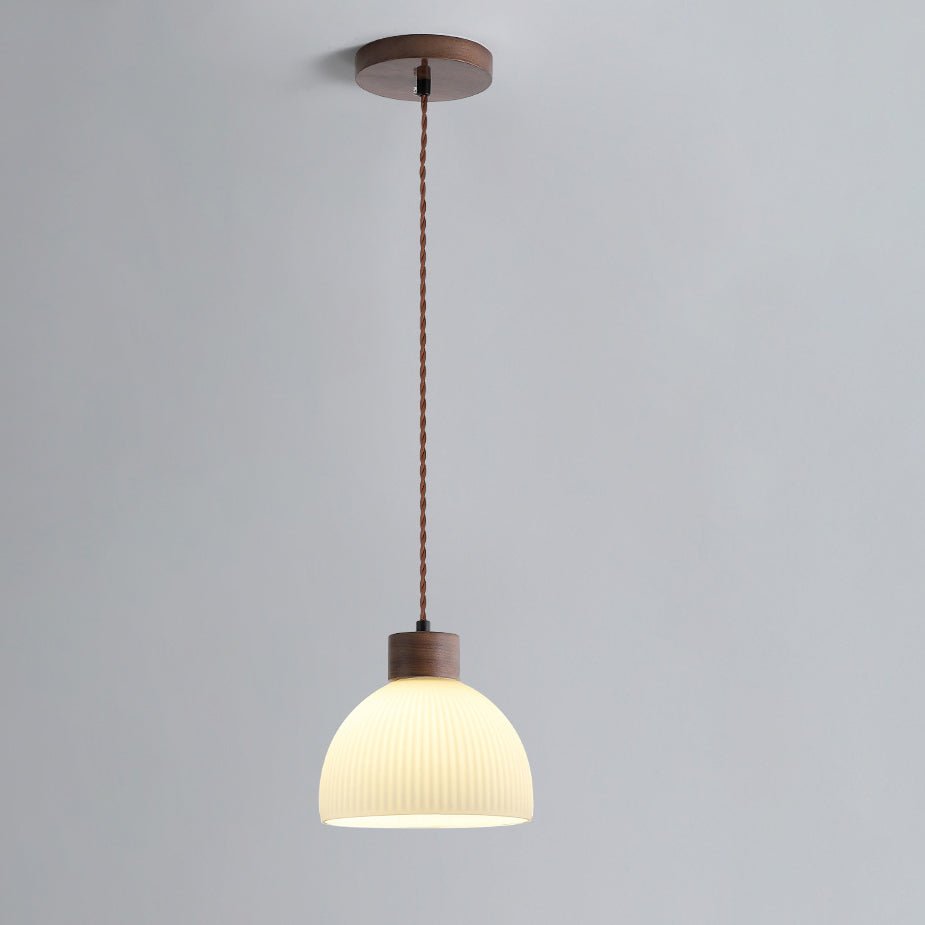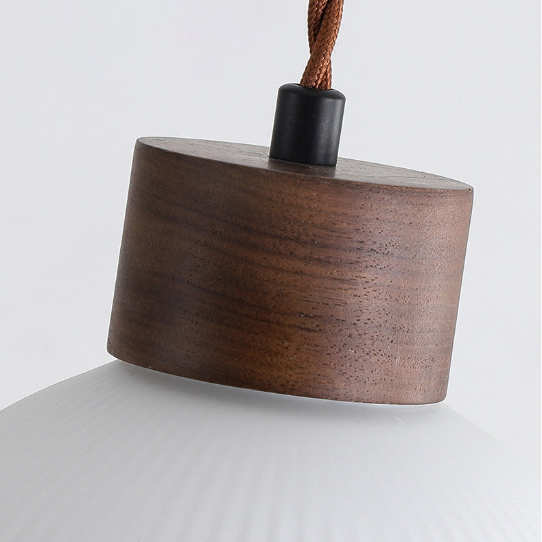 مصباح معلق تقليدي ياباني مصنوع من خشب الجوز على شكل كرة زجاجية مستديرة مضلعة، مزود بمصباح واحد لغرفة الطعام