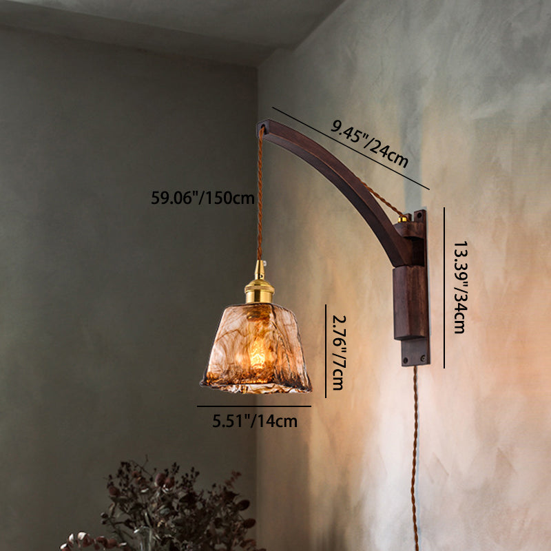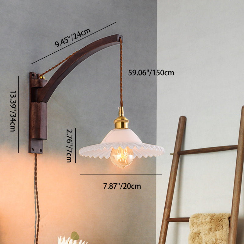 مصباح حائطي تقليدي ياباني من خشب الجوز والسيراميك، منشوري مخروطي، مزود بإضاءة واحدة، مناسب لجانب السرير
