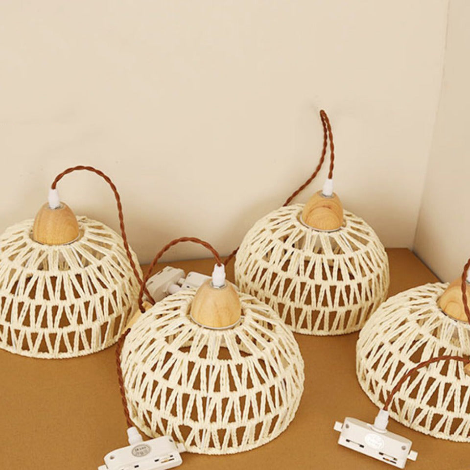 مصباح معلق على شكل قبة نصف كروية من الخشب والألمنيوم والروطان بمسار إضاءة 1/2/3/4 من النسيج الياباني التقليدي لغرفة الطعام