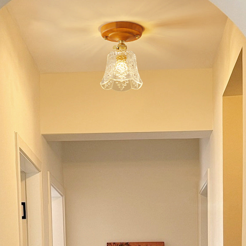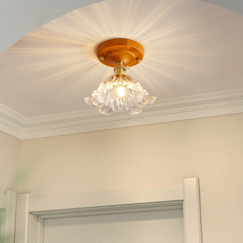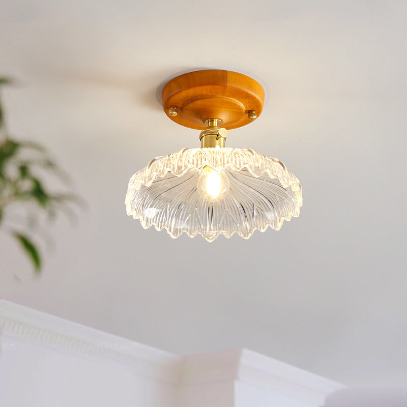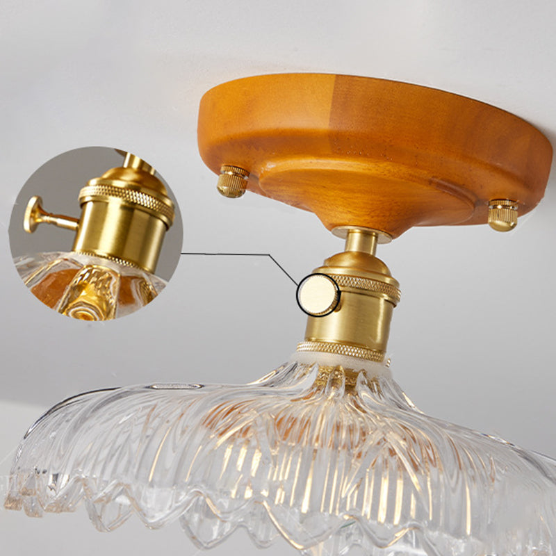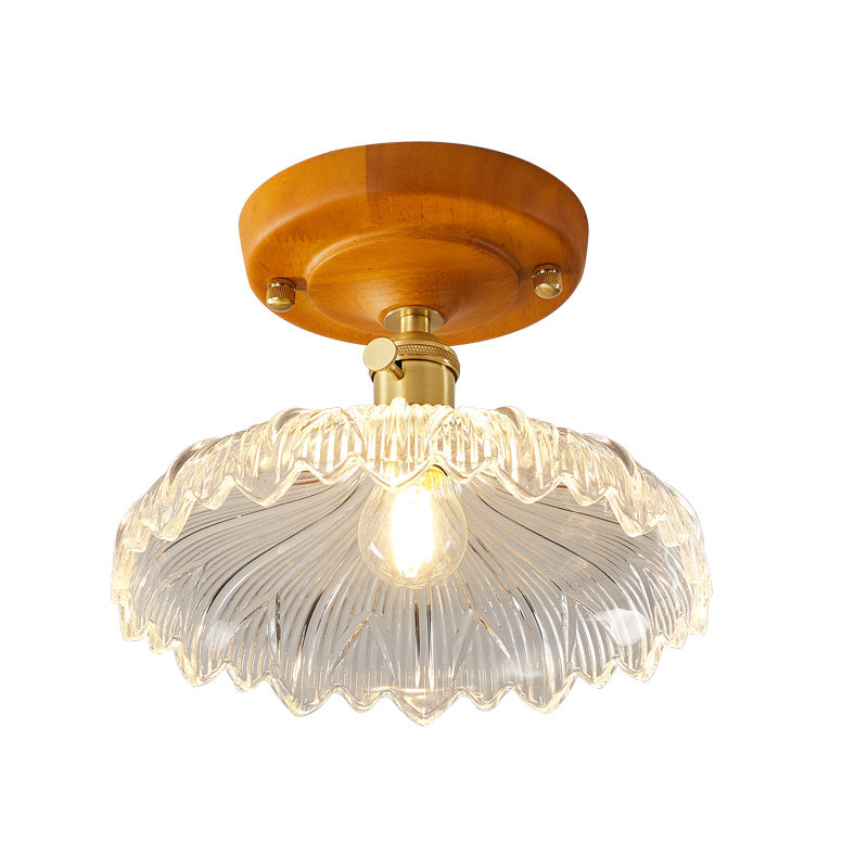 مصباح سقف ياباني تقليدي مصنوع من الخشب والنحاس والزجاج ومُزود بقاعدة شبه مستوية لغرفة النوم
