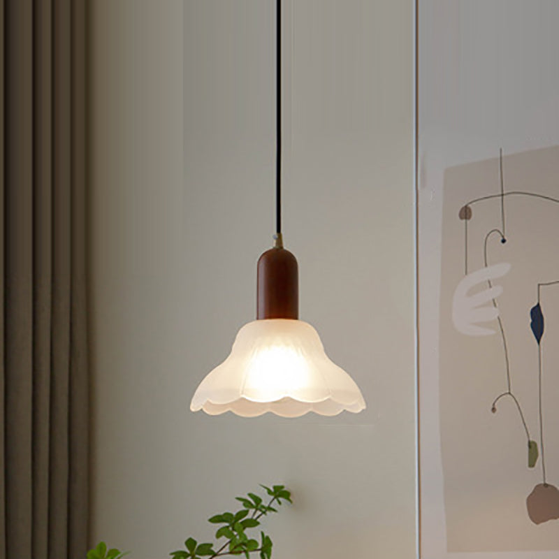 مصباح معلق على شكل زهرة نصف كروية من الخشب والنحاس والزجاج الياباني التقليدي لغرفة الطعام