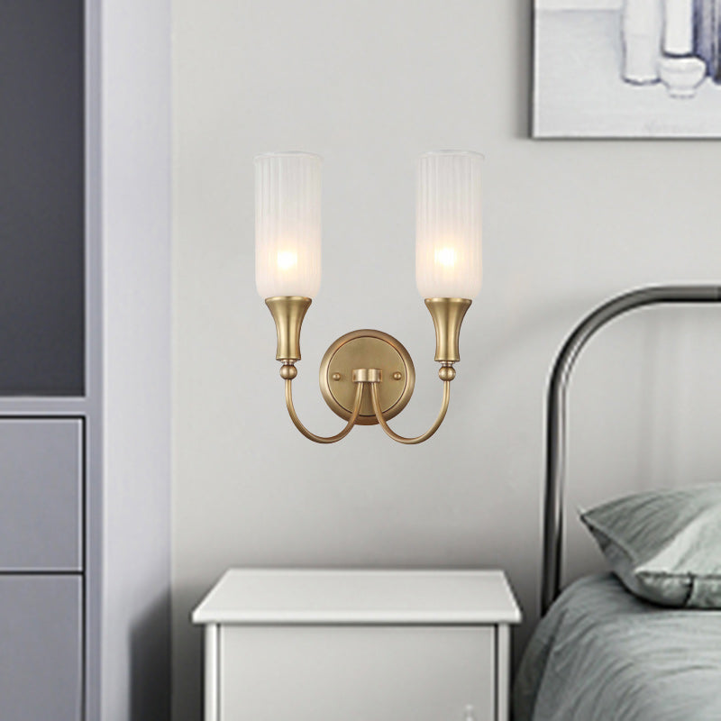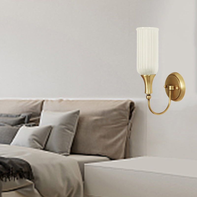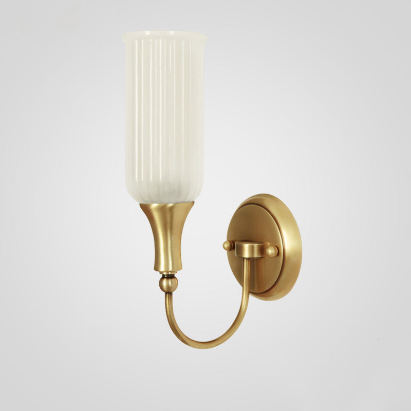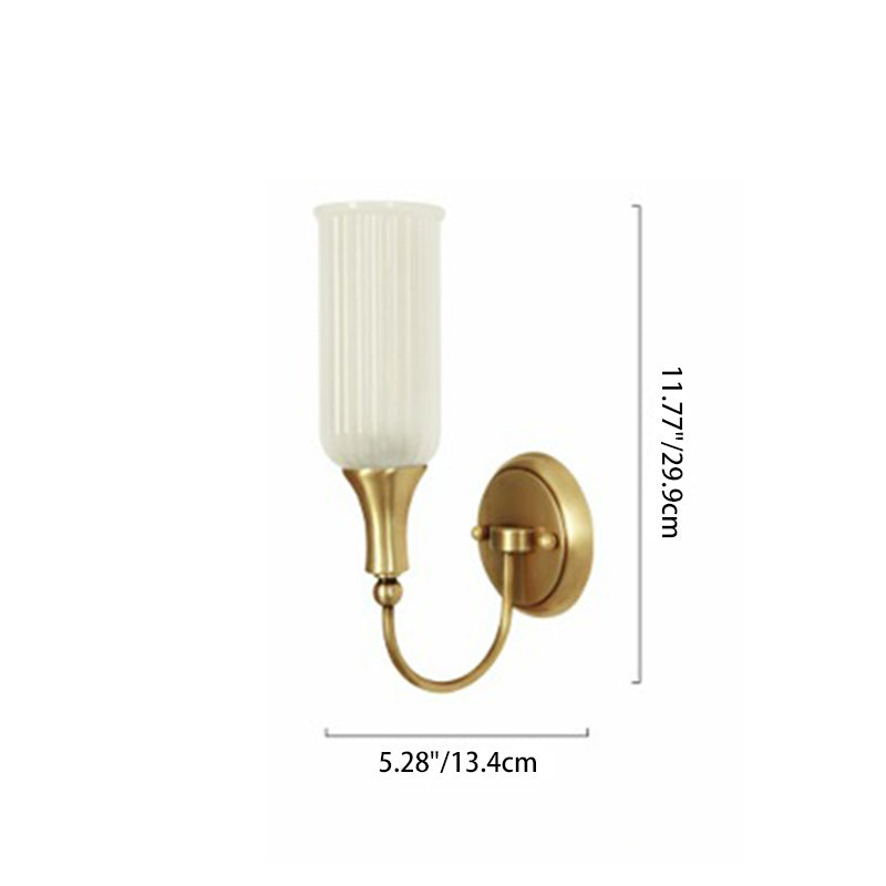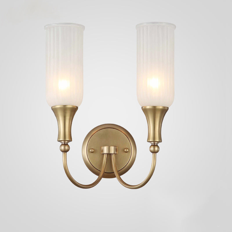 مصباح حائطي تقليدي ريفي عمودي مصنوع من النحاس والزجاج بنصف ضوء لغرفة المعيشة