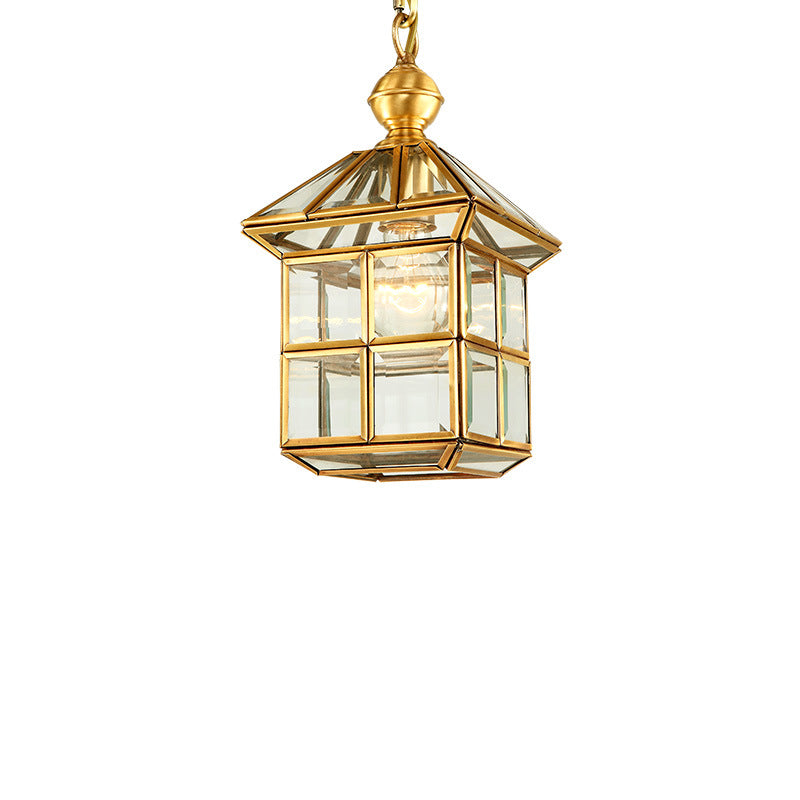 ثريا زجاجية مربعة الشكل بتصميم ريفي تقليدي، نحاسية، بإضاءة 1/3 لغرفة المعيشة