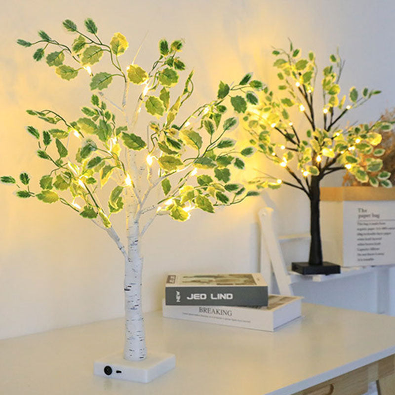 Traditional Rustic Plastics Tree LED USB Battery Table Lamp For Living Room