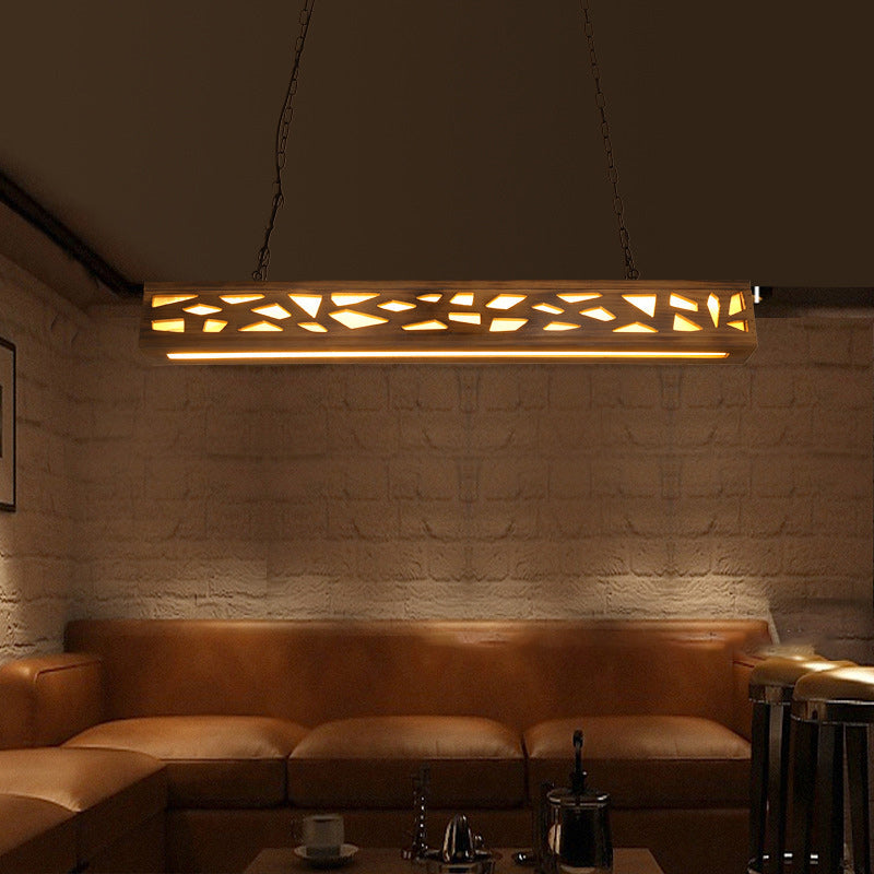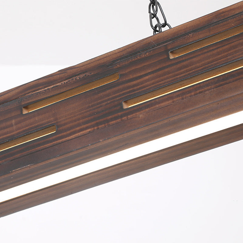 ثريا LED خشبية صلبة مستطيلة الشكل بتصميم ريفي تقليدي لغرفة الطعام