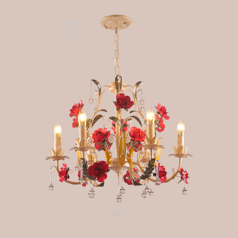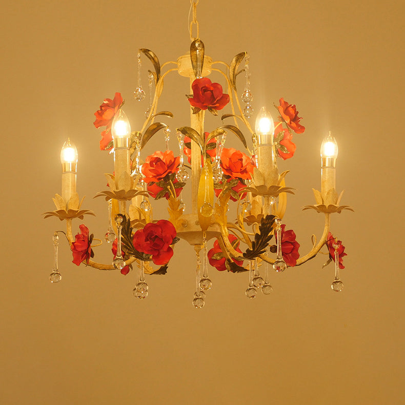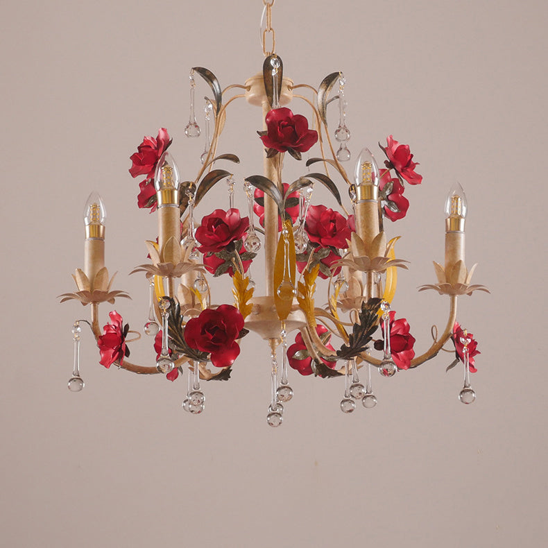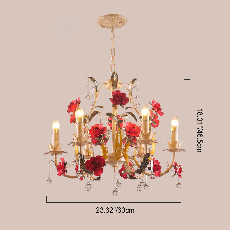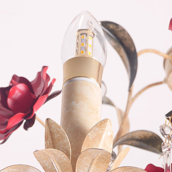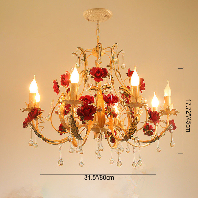 حامل شموع على شكل وردة ريفية تقليدية بإطار حديدي وثريا زجاجية 6/8 ضوء لغرفة المعيشة