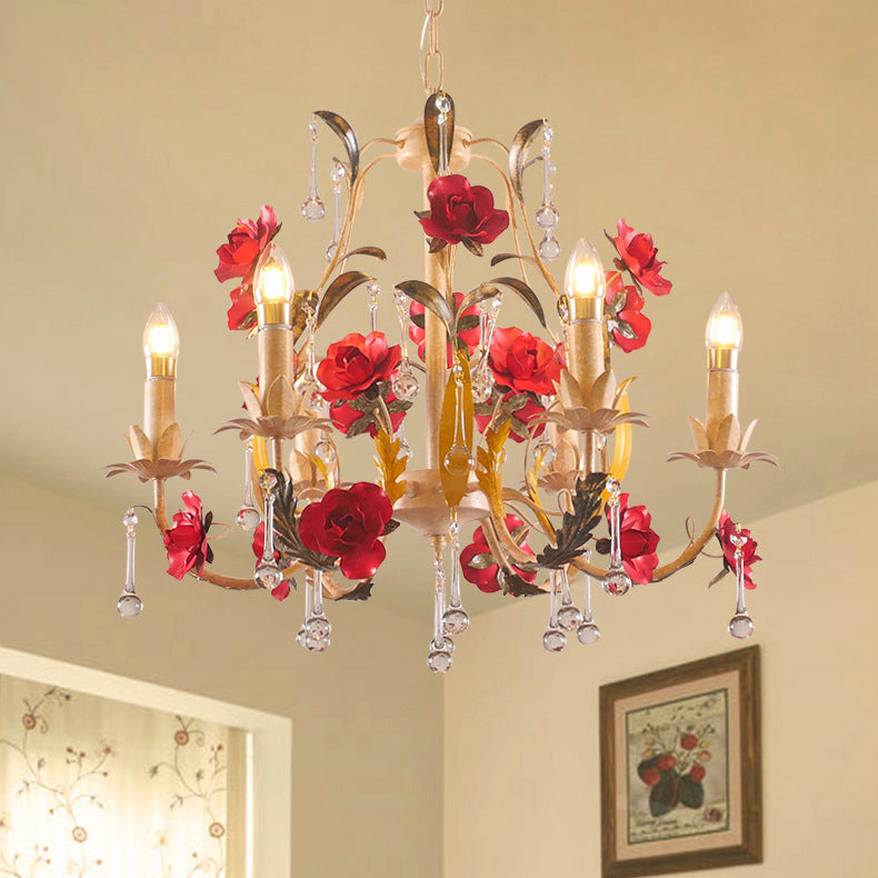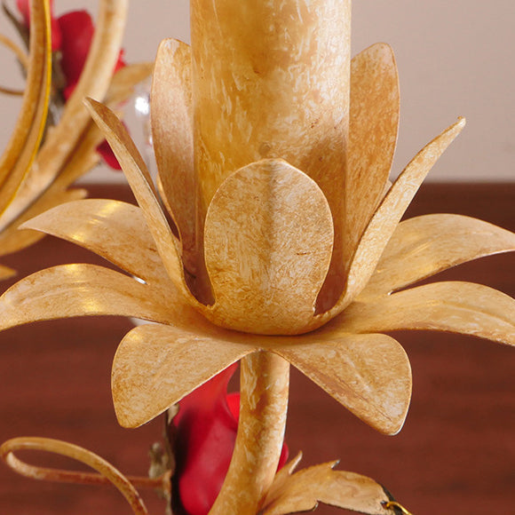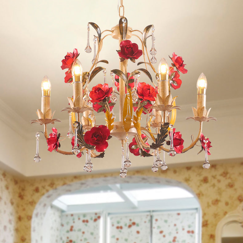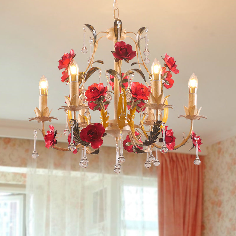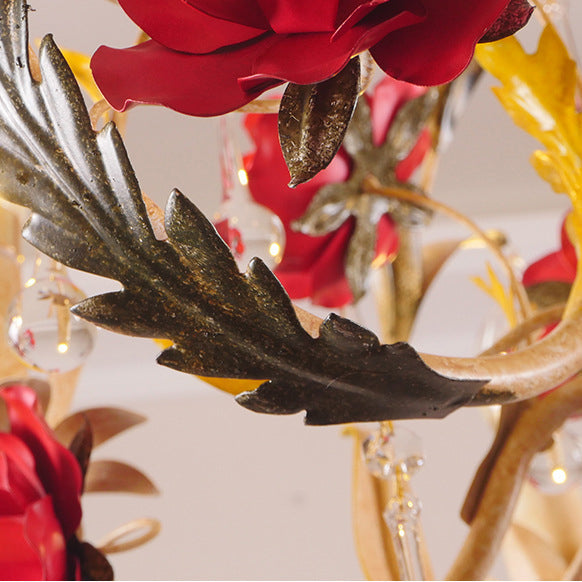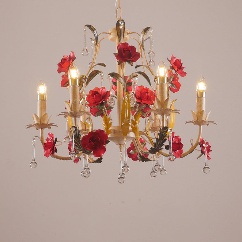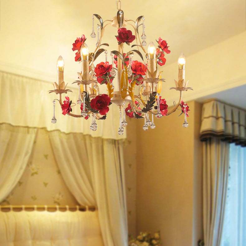 حامل شموع على شكل وردة ريفية تقليدية بإطار حديدي وثريا زجاجية 6/8 ضوء لغرفة المعيشة
