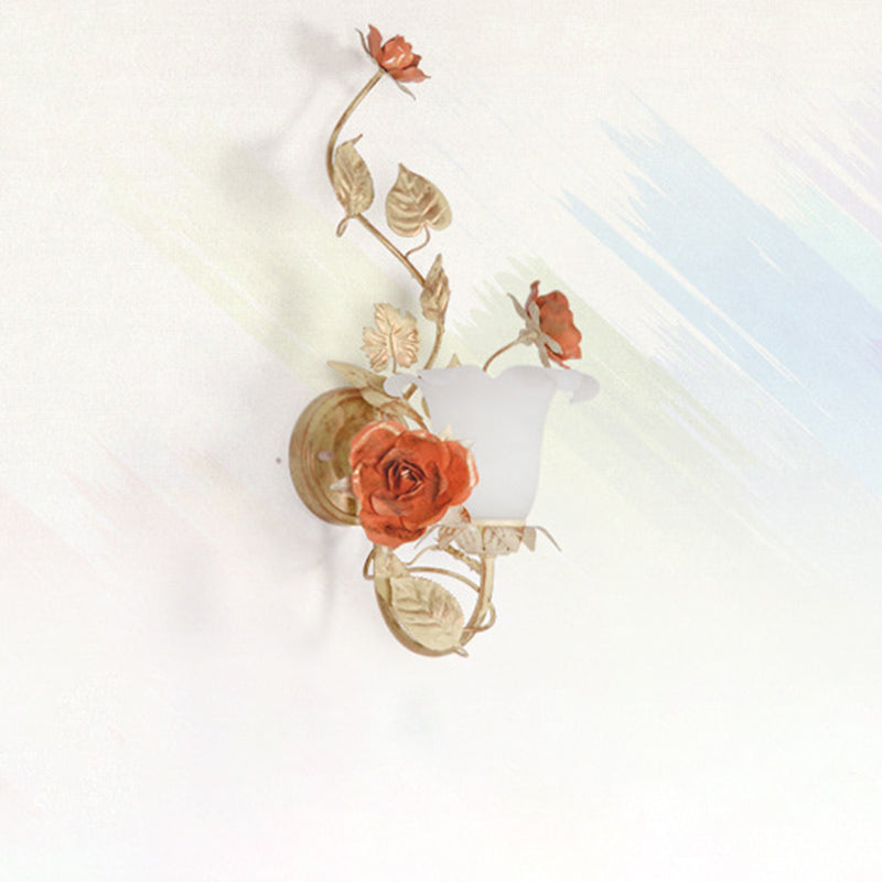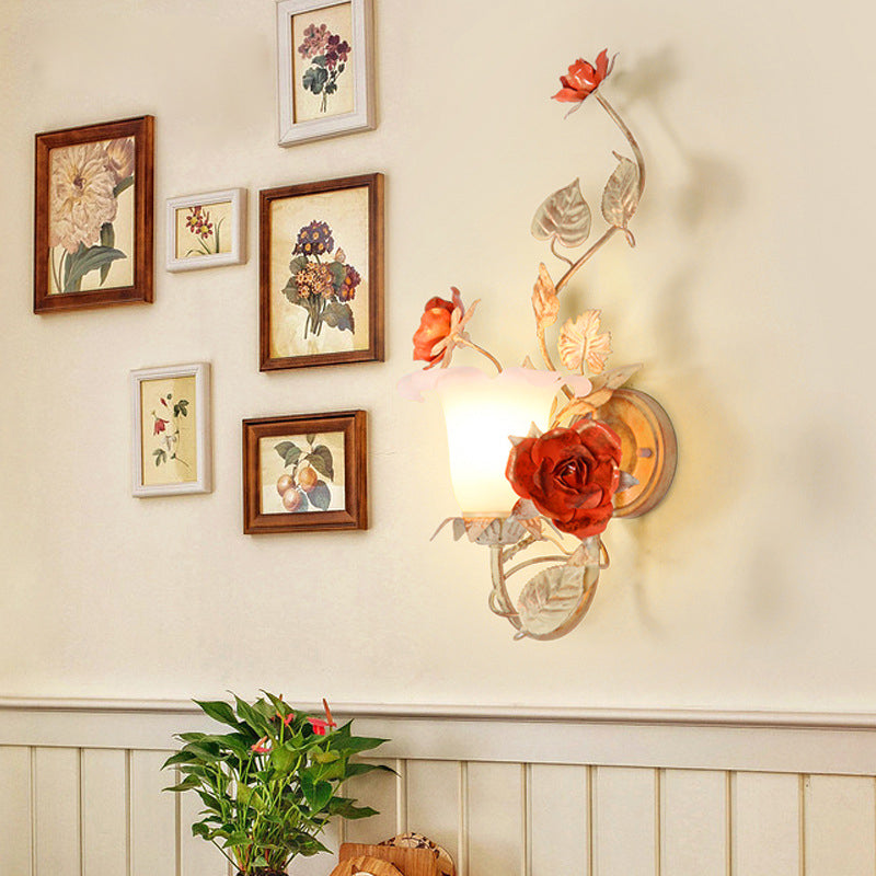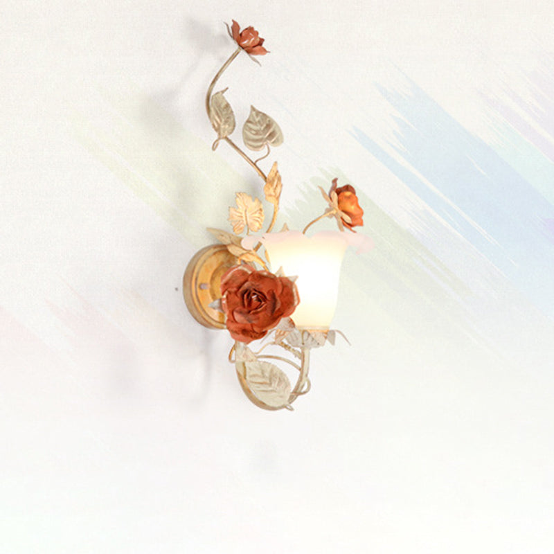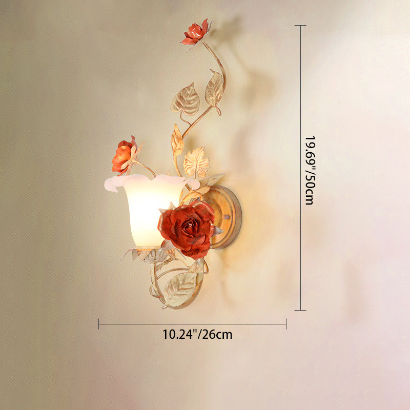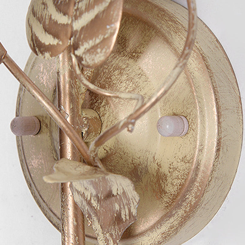 مصباح حائط دائري من الزجاج والحديد بتصميم ريفي تقليدي على شكل ورقة ورد لغرفة النوم