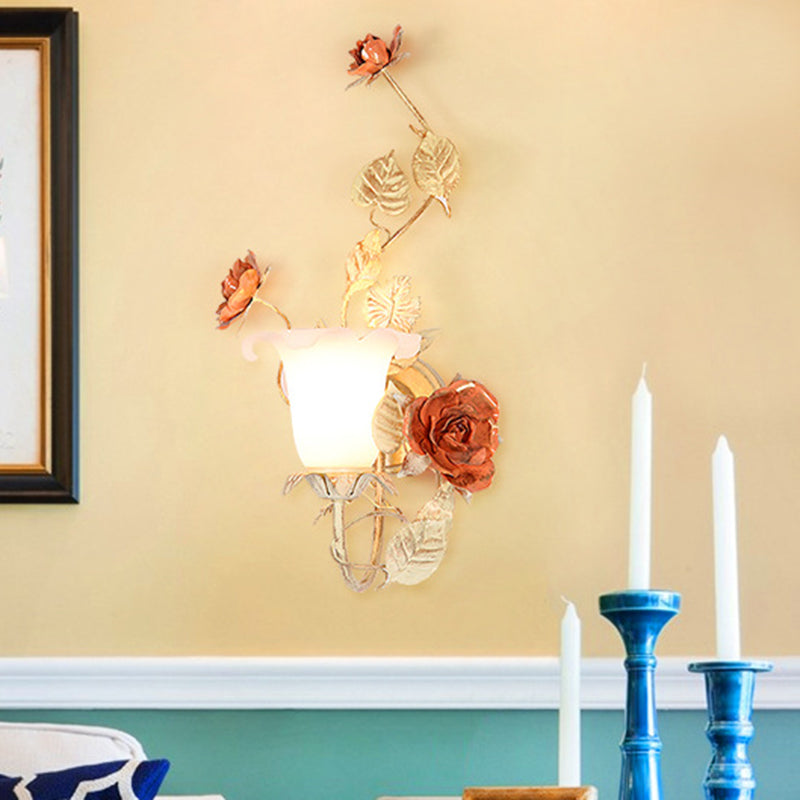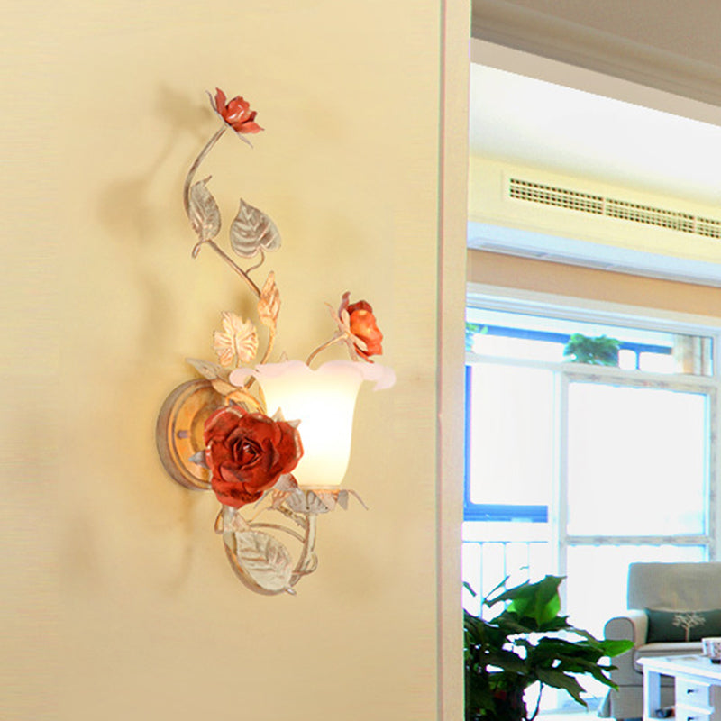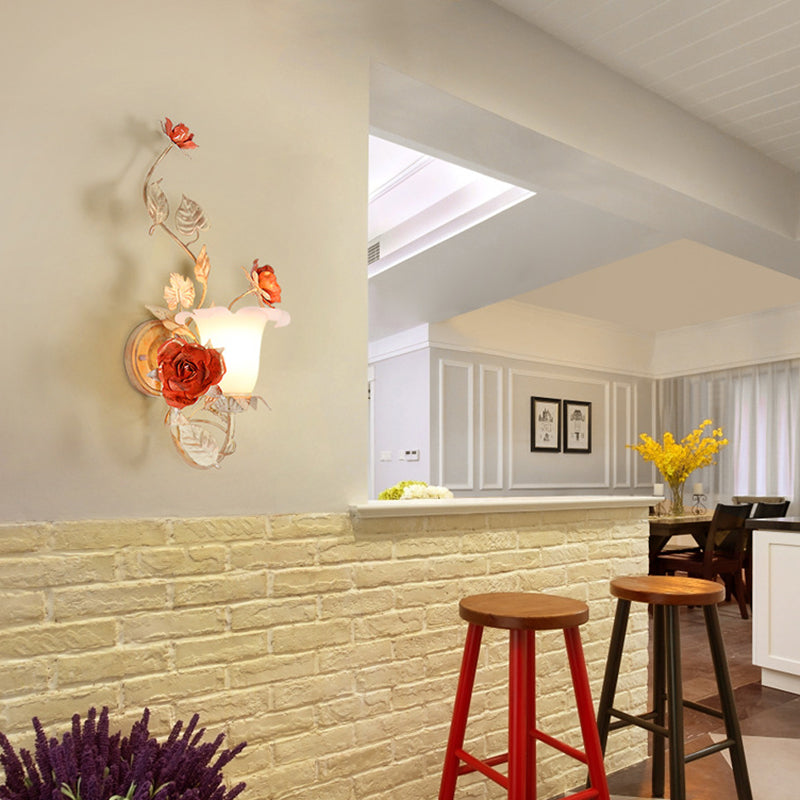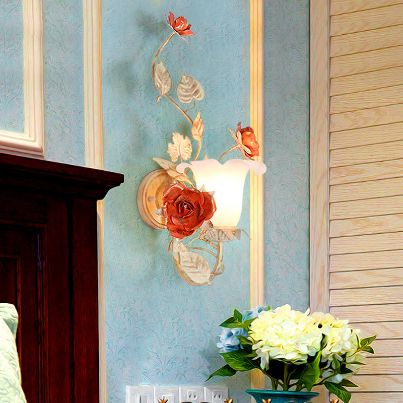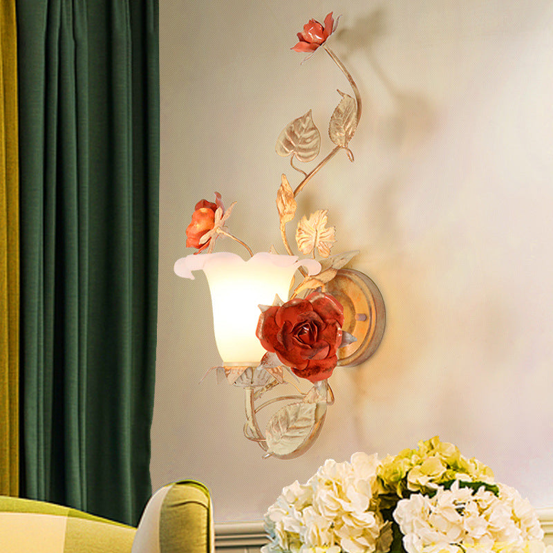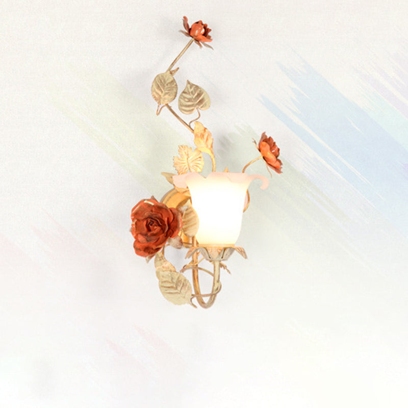 مصباح حائط دائري من الزجاج والحديد بتصميم ريفي تقليدي على شكل ورقة ورد لغرفة النوم
