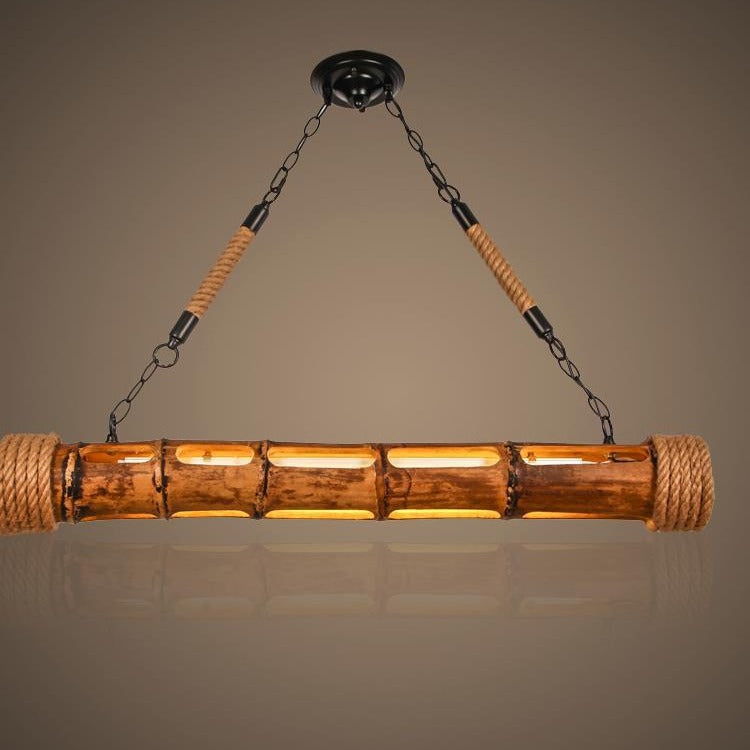 ثريا جزيرة LED ذات إضاءة تقليدية ريفية دائرية مصنوعة من الخيزران وحبل القنب لغرفة الطعام