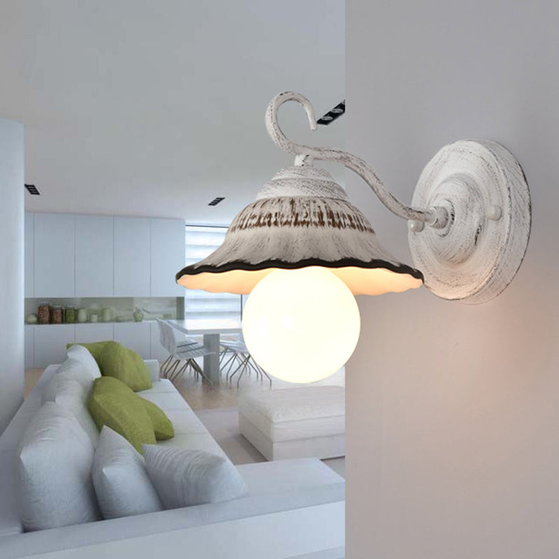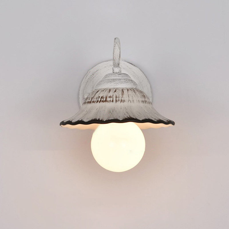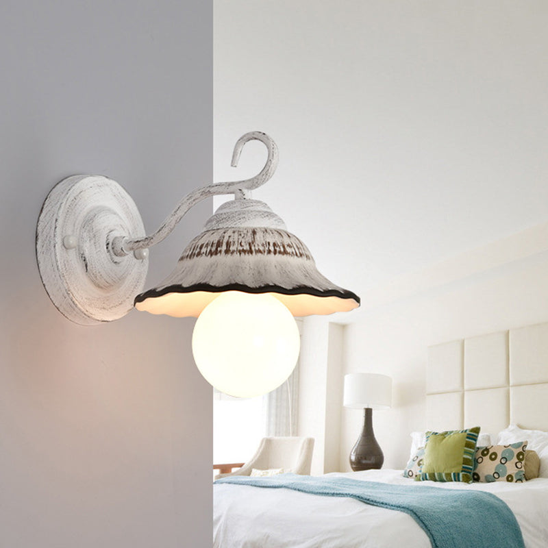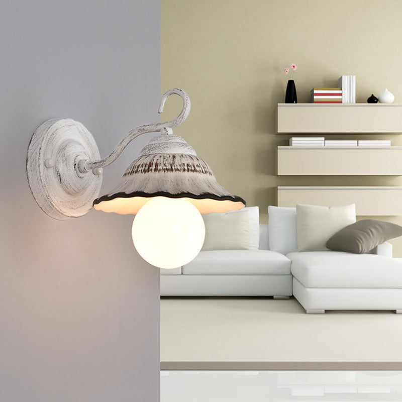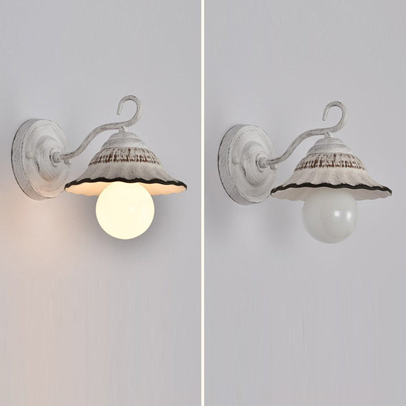 مصباح حائطي مخروطي دائري تقليدي ريفي مصنوع من الحديد والسيراميك مزود بإضاءة واحدة لغرفة المعيشة