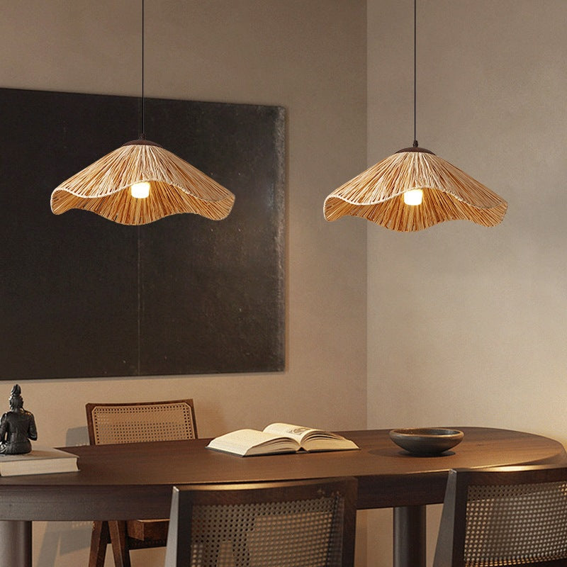 مصباح معلق تقليدي ريفي دائري من الحديد القشي مزود بمصباح واحد لغرفة المعيشة