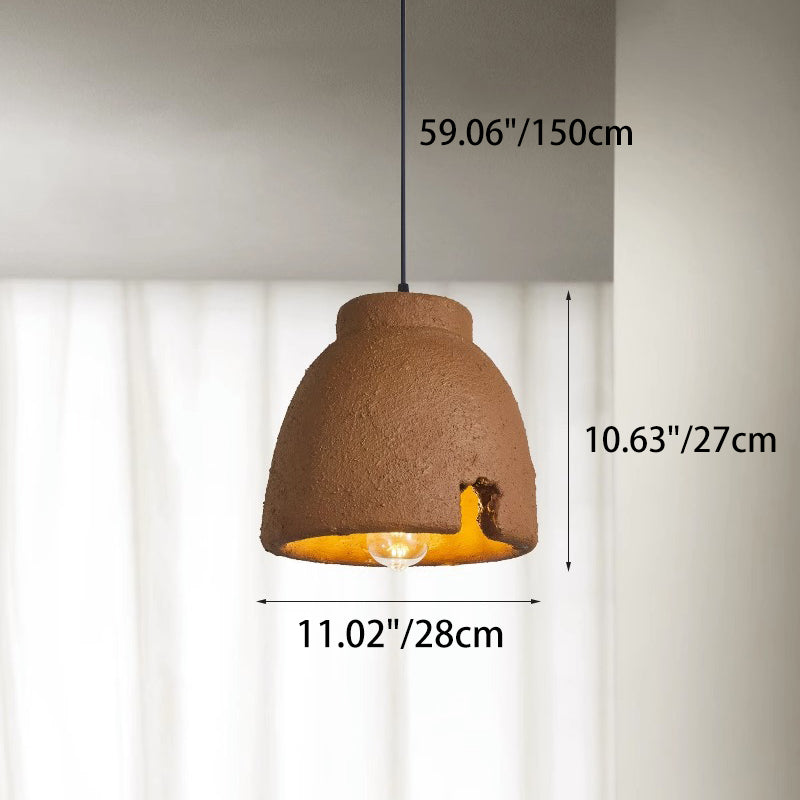 مصباح معلق تقليدي ريفي على شكل وعاء نصف دائري، مصنوع من البوليسترين بالكامل، مزود بـ 1 مصباح لغرفة الطعام