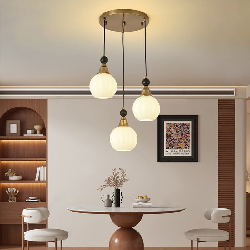 ثريا تقليدية على شكل كرة ريفية مصنوعة من الخشب الصلب والحديد والزجاج بثلاثة مصابيح لغرفة المعيشة