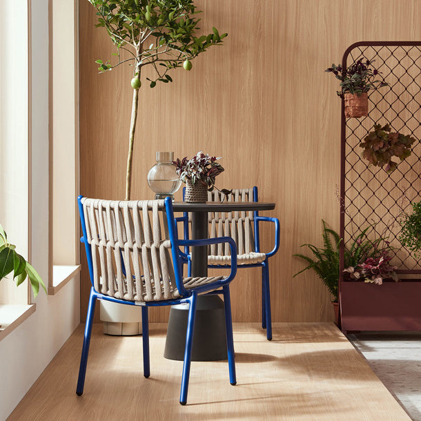 Traditional Rustic Square Hollow Rope Aluminum Dining Chair Backrest Arm For Dining Room