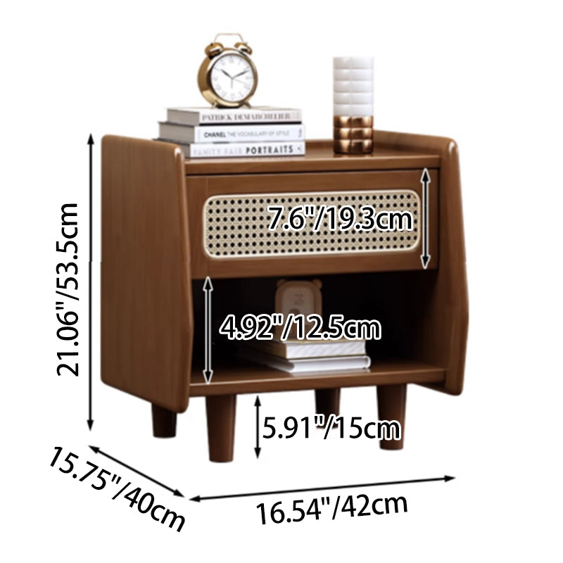طاولة جانبية تقليدية مربعة الشكل مصنوعة من خشب المطاط والصنوبر والبلاستيك والروطان مع درج واحد لغرفة النوم