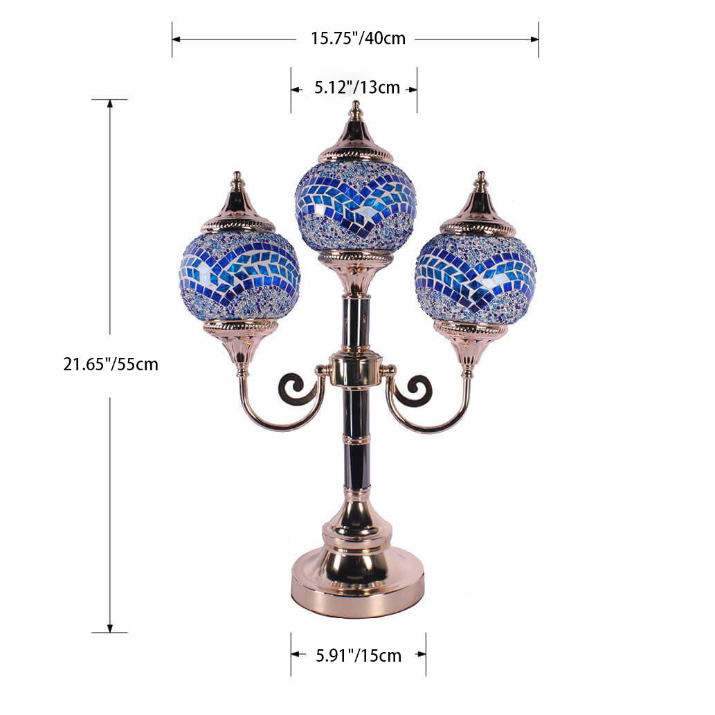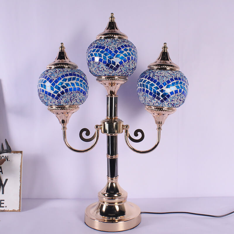 Traditional Rustic Stained Glass Round Shade Sconce 3-Light Table Lamp For Bedroom