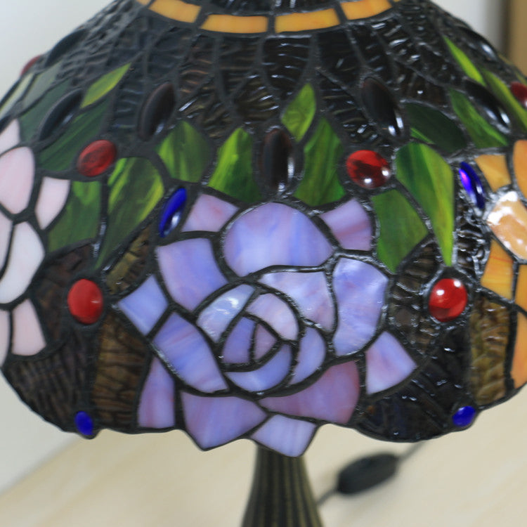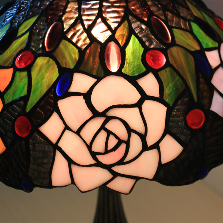 Traditional Tiffany Bloom Floral Stained Glass 1 - Light Table Lamp For Bedroom