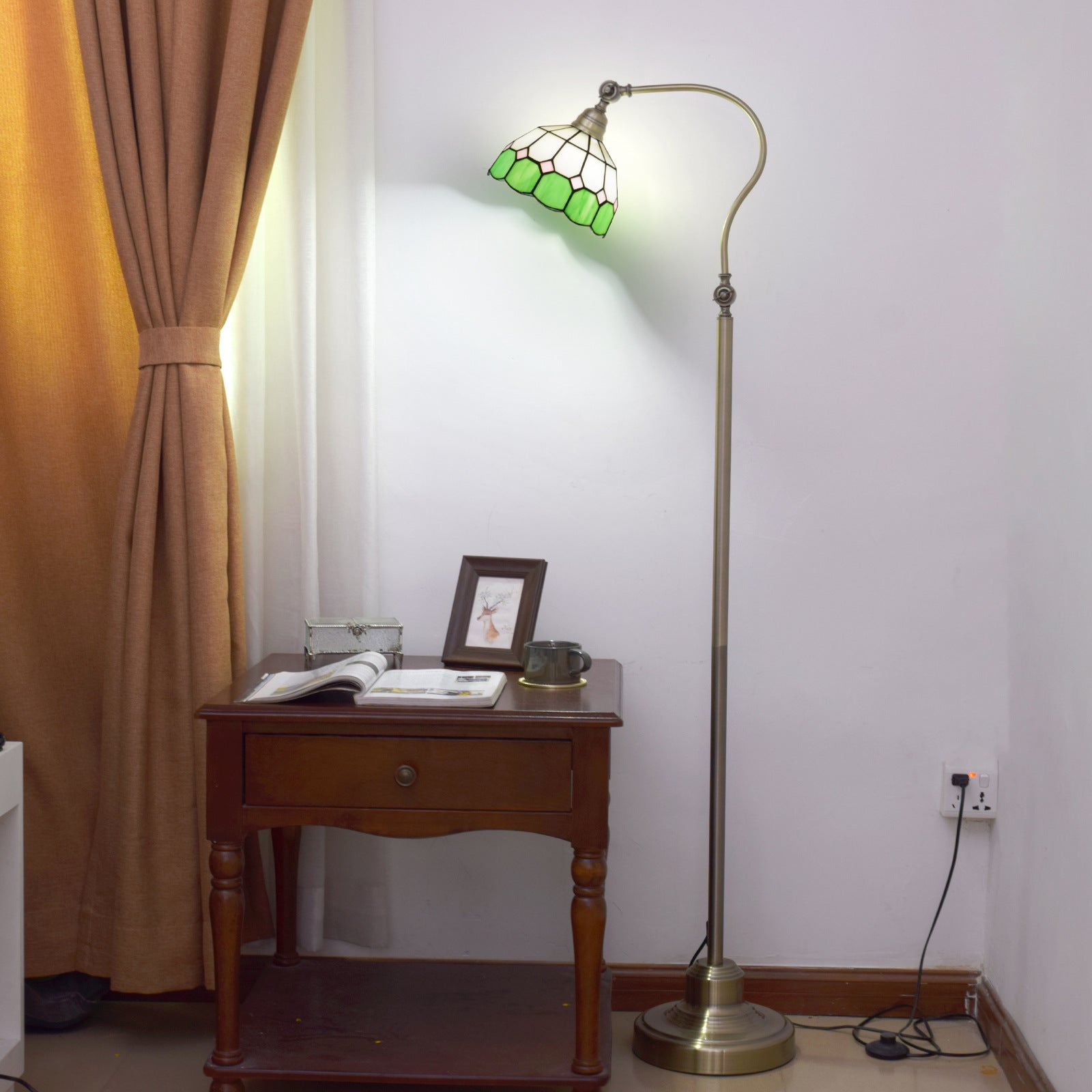 Traditional Tiffany Bowl Round Checkerboard Glass Iron 1-Light Standing Floor Lamp For Living Room