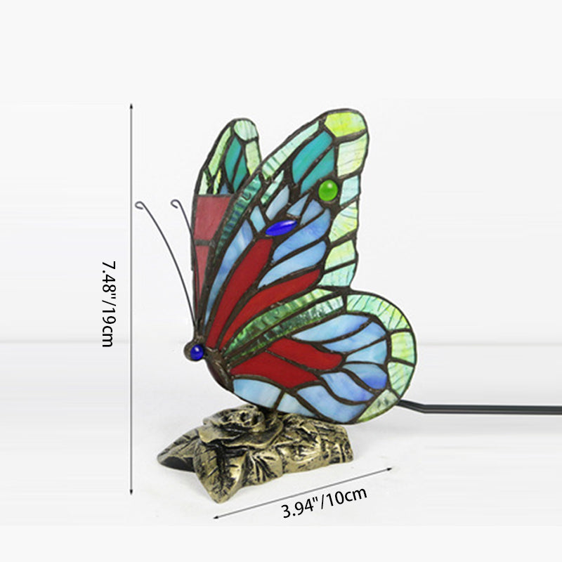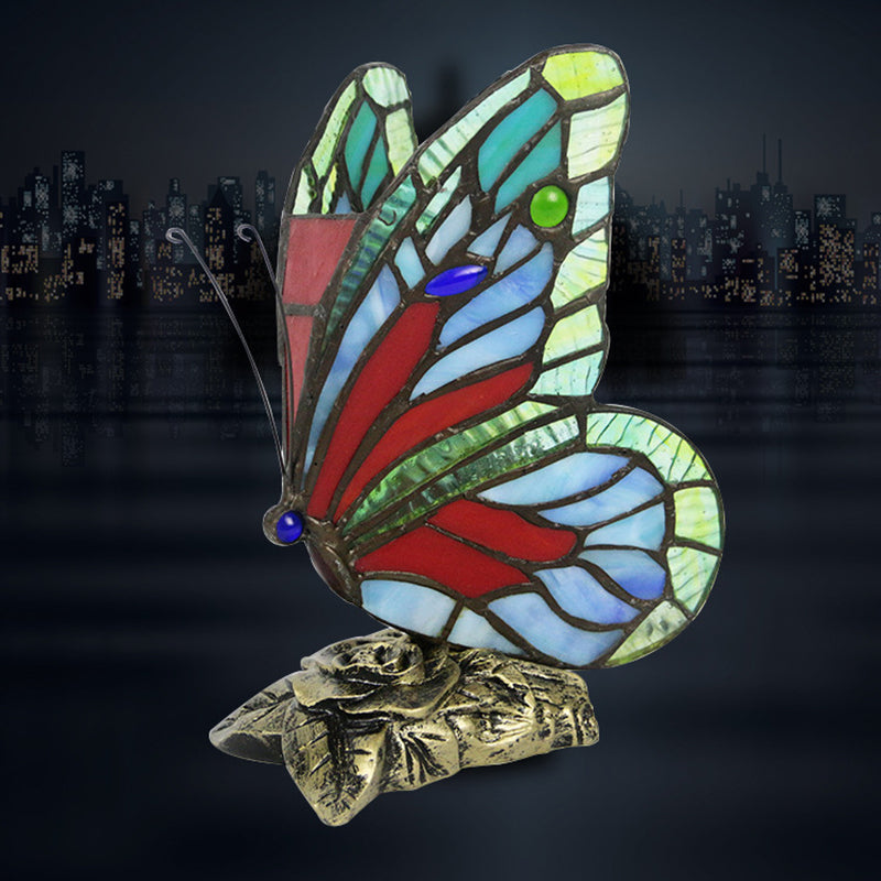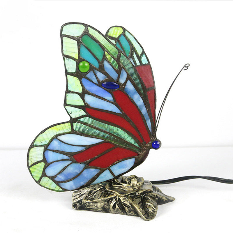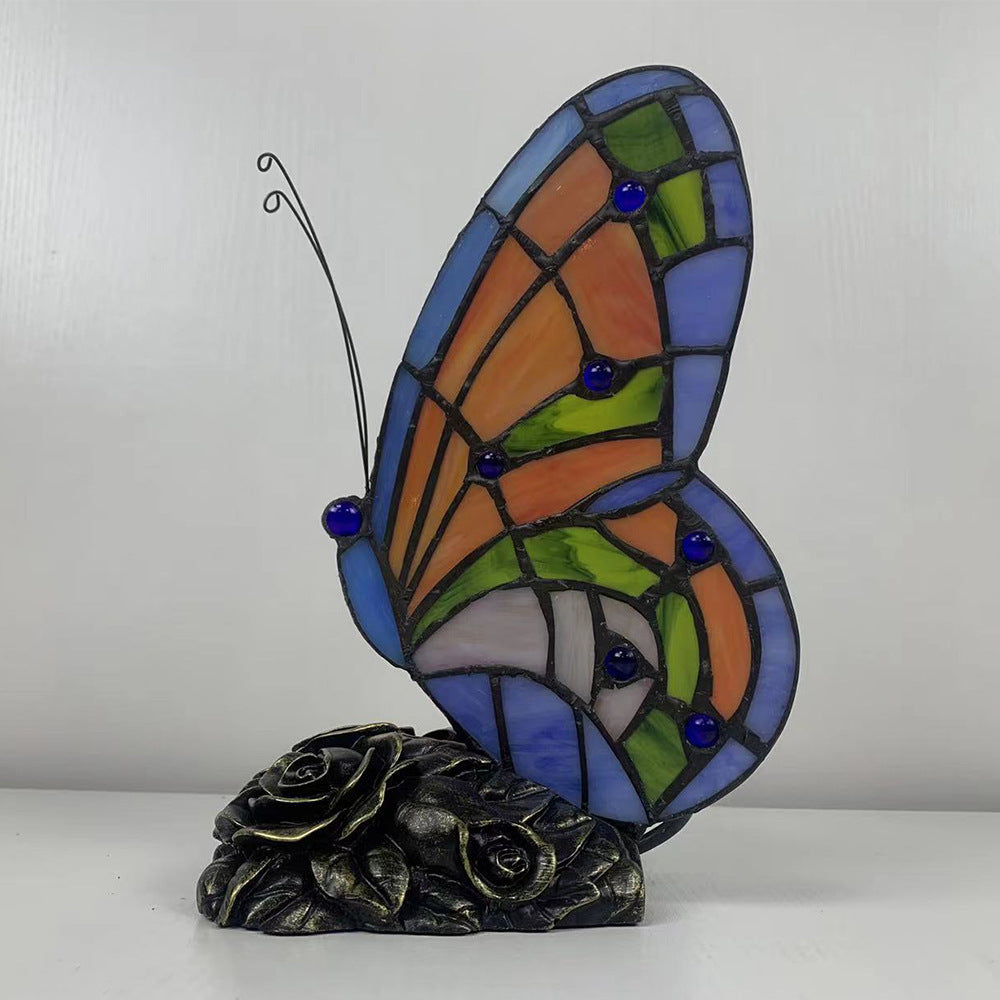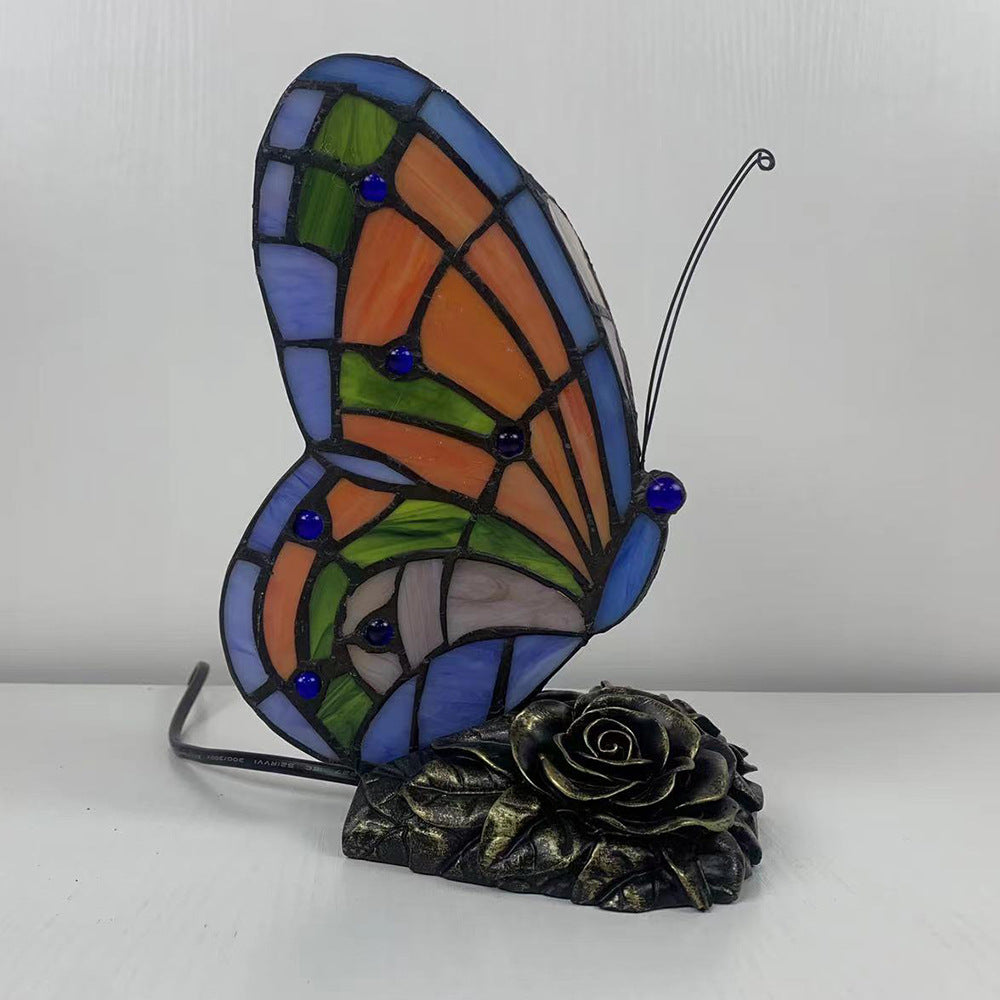Traditional Tiffany Butterfly Rose Base Resin Glass 1-Light Table Lamp For Bedroom