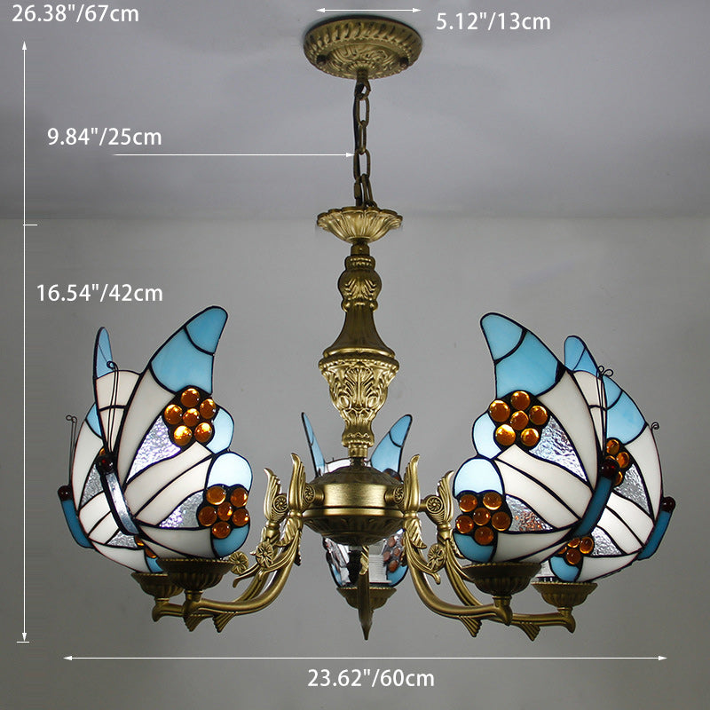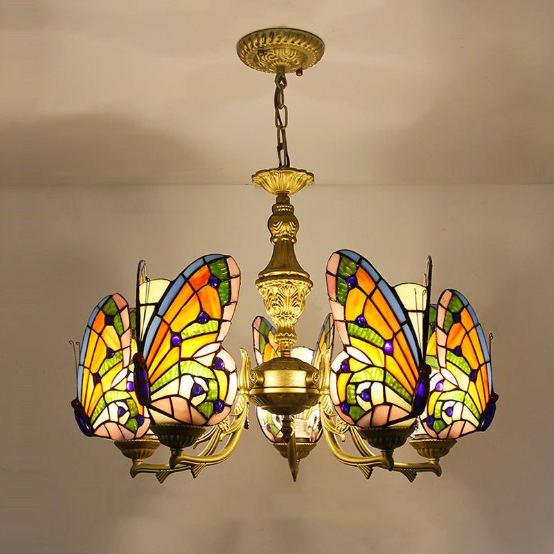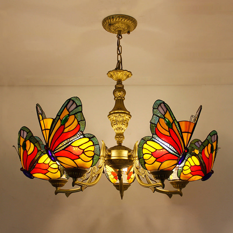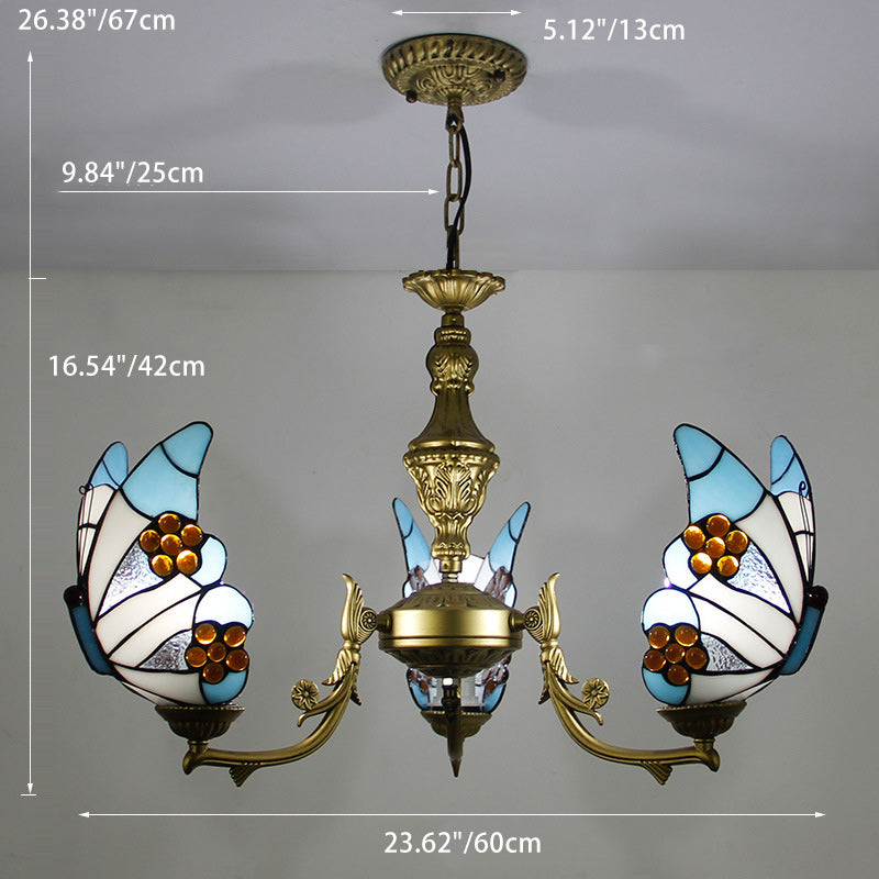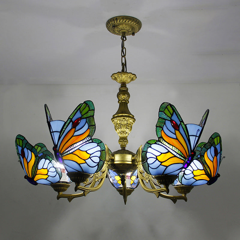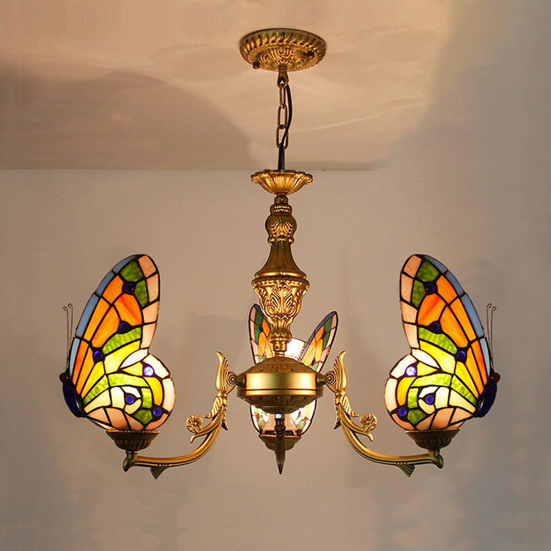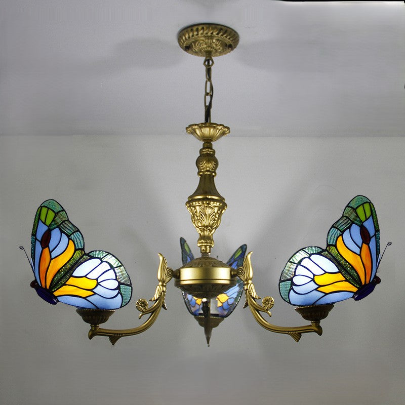 ثريا تيفاني التقليدية على شكل فراشة مصنوعة من سبائك الزجاج، 3/5 ضوء لغرفة النوم