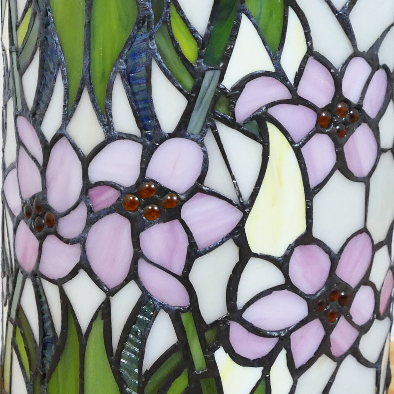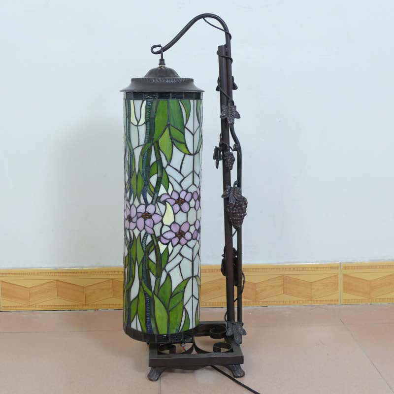Traditional Tiffany Column Iron Glass 2-Light Standing Floor Lamp For Living Room
