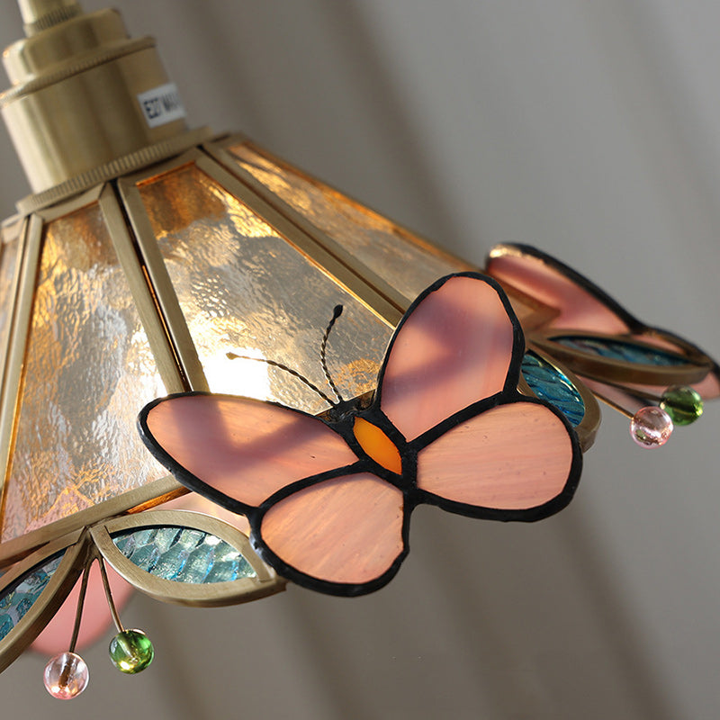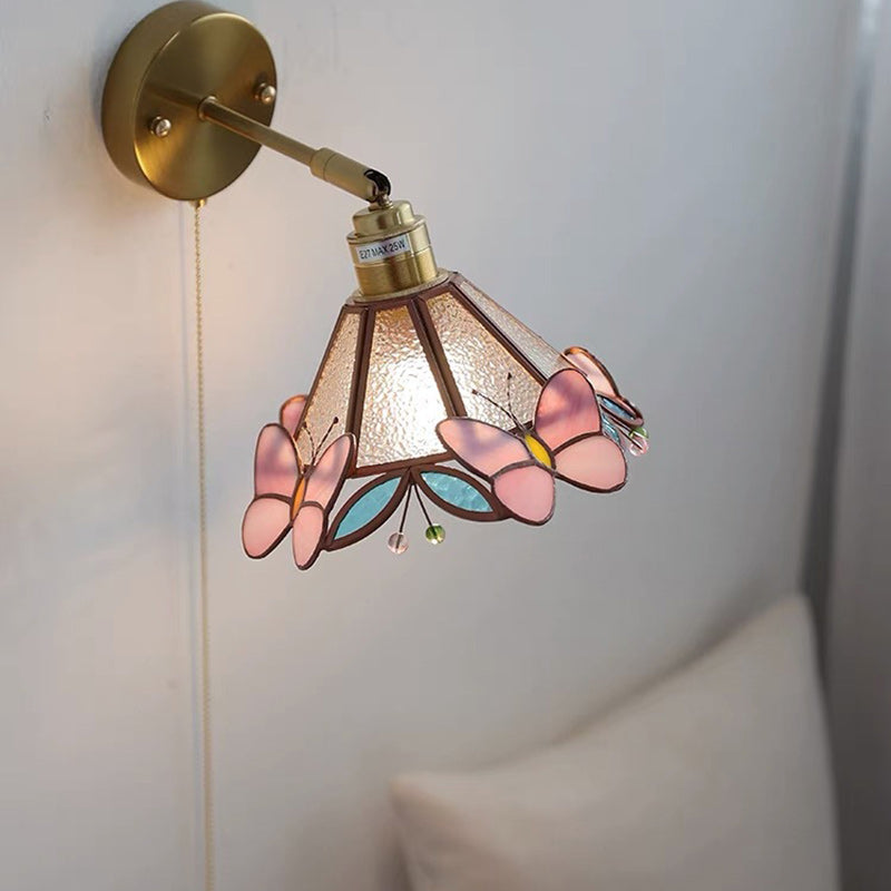 مصباح حائط تقليدي من تيفاني مخروطي الشكل مصنوع من الزجاج والنحاس، مزود بإضاءة واحدة، مناسب لغرفة المعيشة