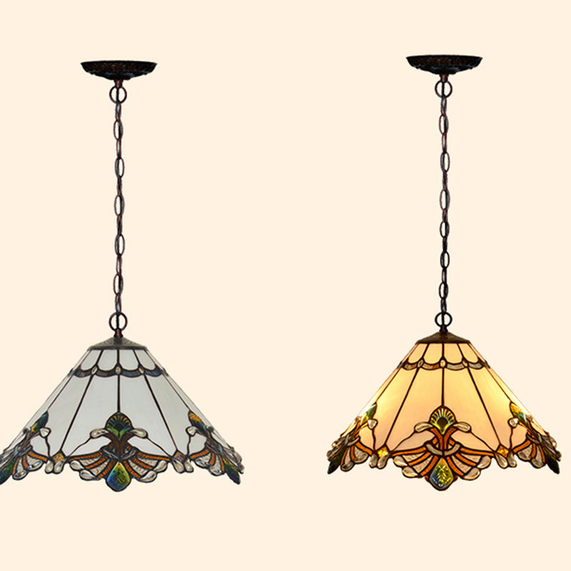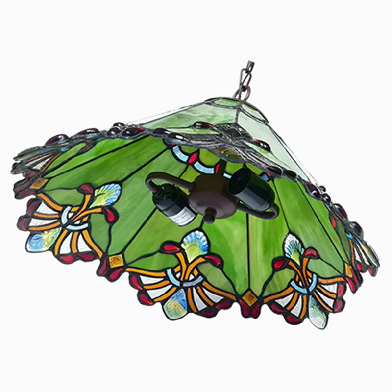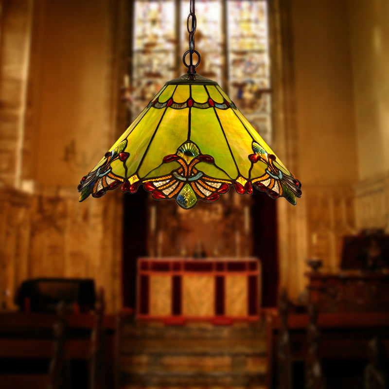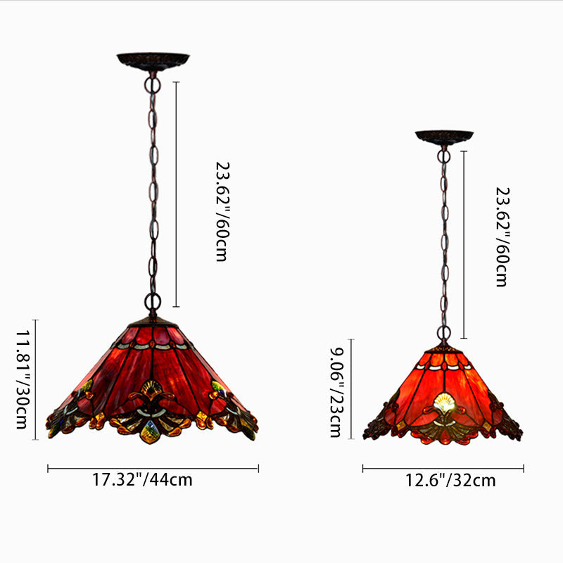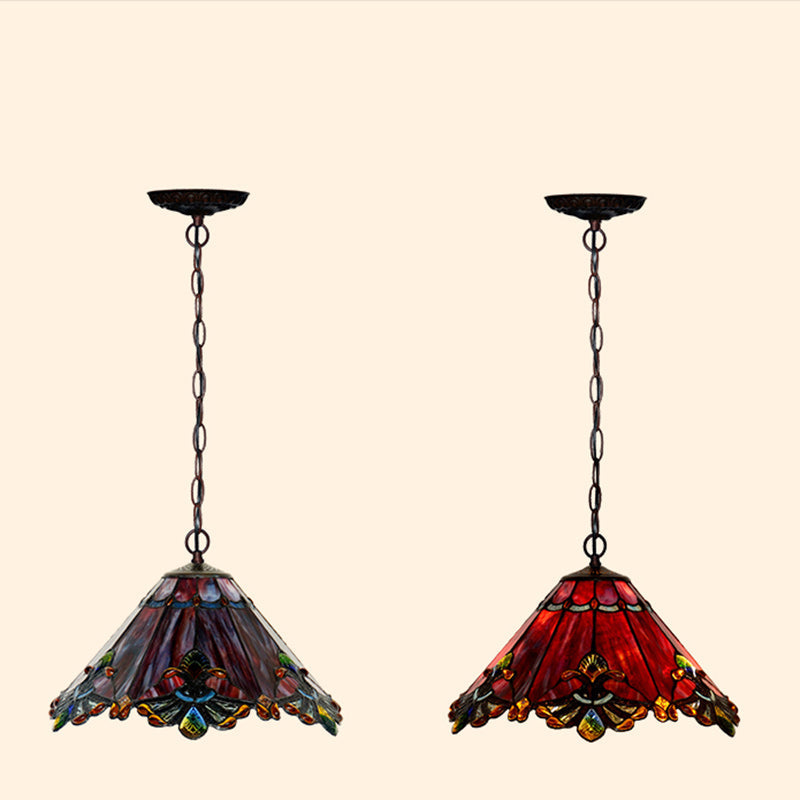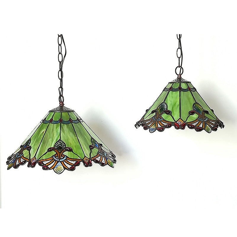 مصباح معلق تقليدي من تيفاني مخروطي من الحديد والزجاج، نصف ضوء، لغرفة المعيشة