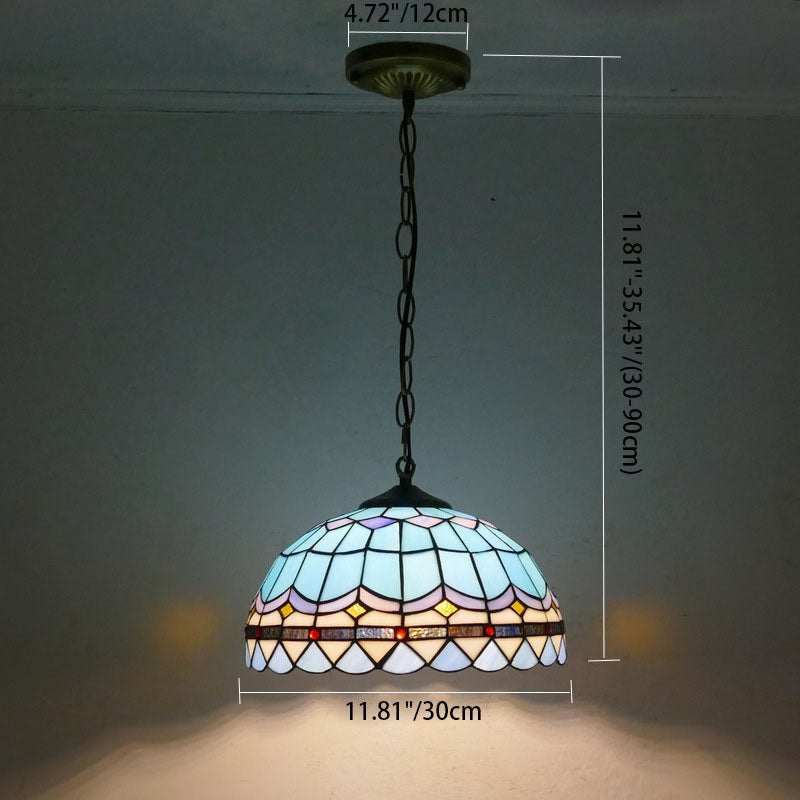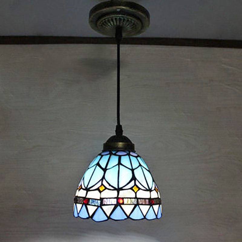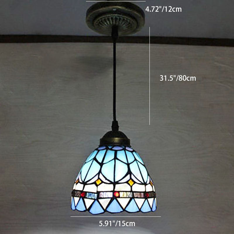 مصباح معلق تقليدي من تيفاني مخروطي من الحديد والزجاج الملون، مزود بمصباح واحد لغرفة المعيشة
