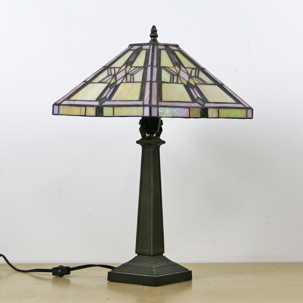 Traditional Tiffany Conic Diamond Deer Alloy Glass 1-Light Table Lamp For Study