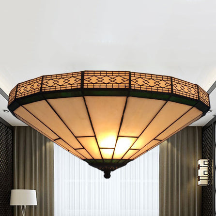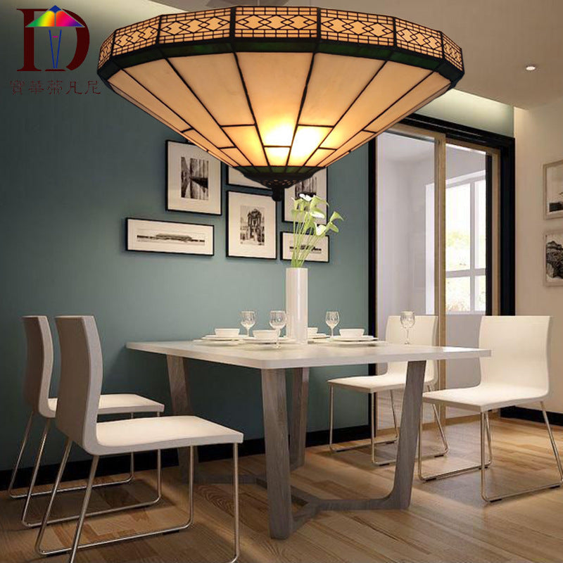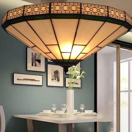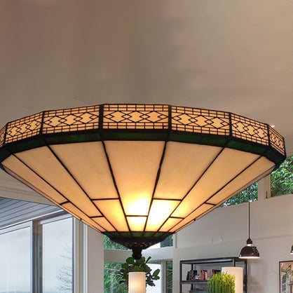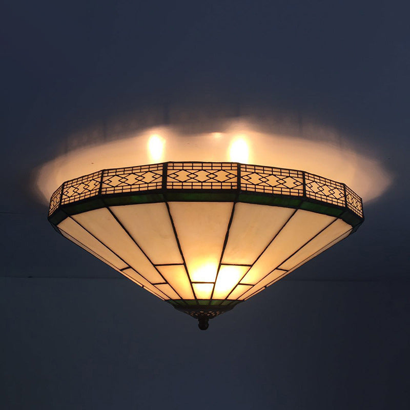 مصباح سقف تيفاني مخروطي تقليدي من الزجاج الماسي بثلاثة مصابيح مثبتة في السقف لغرفة المعيشة