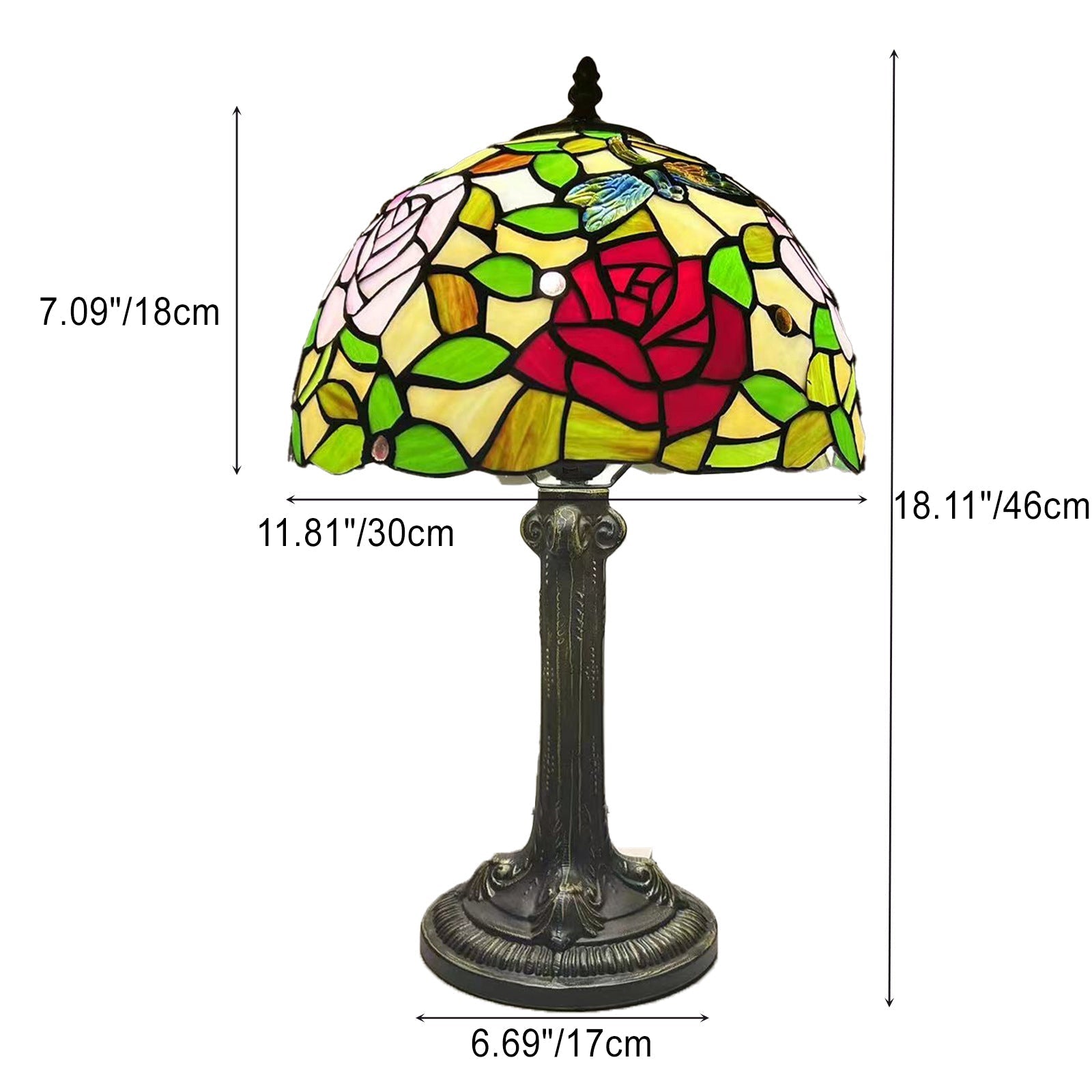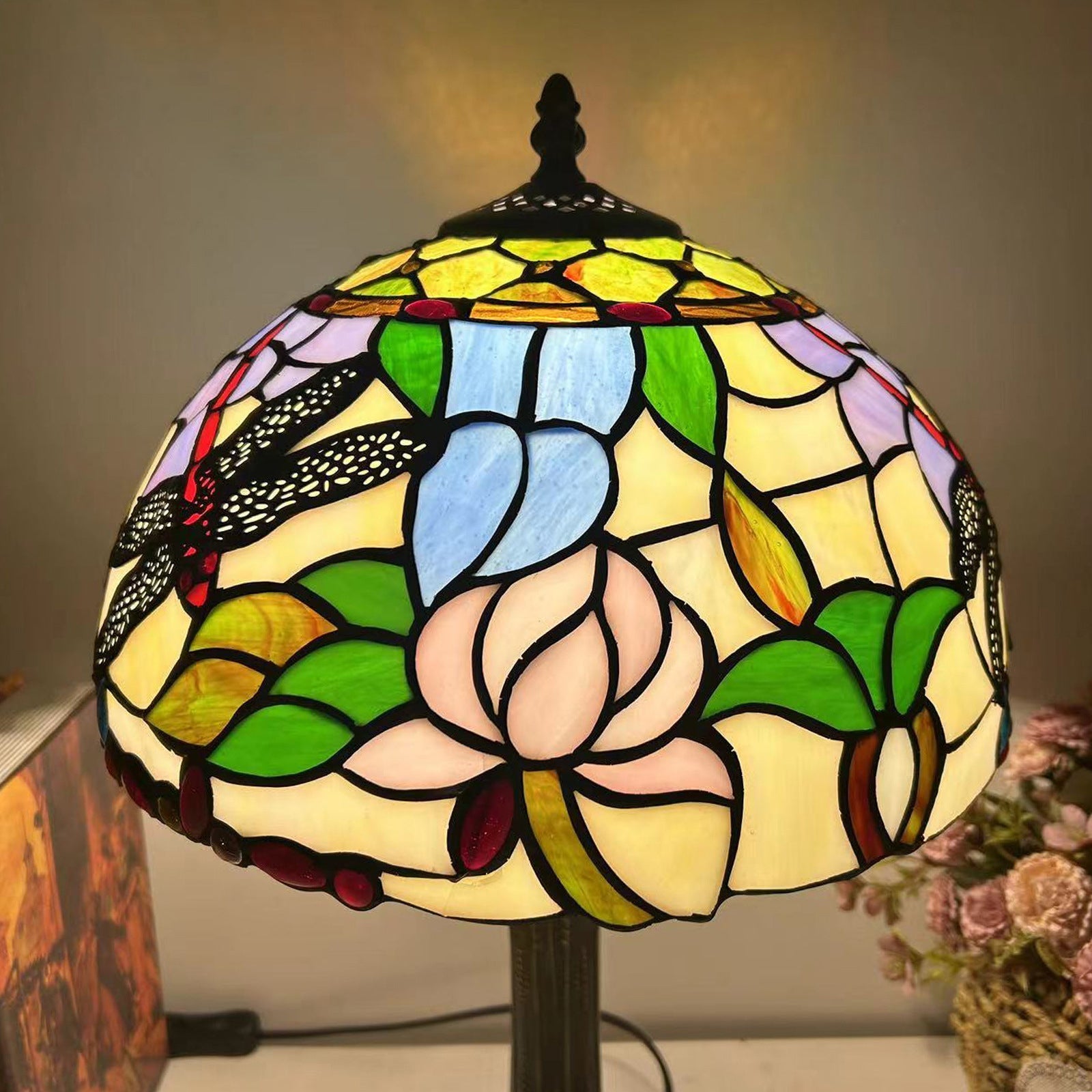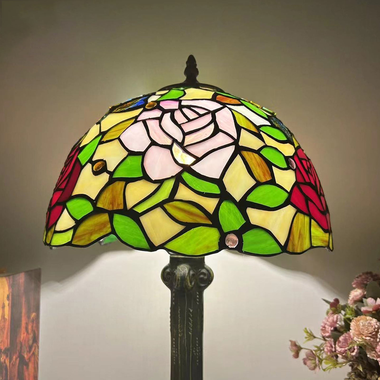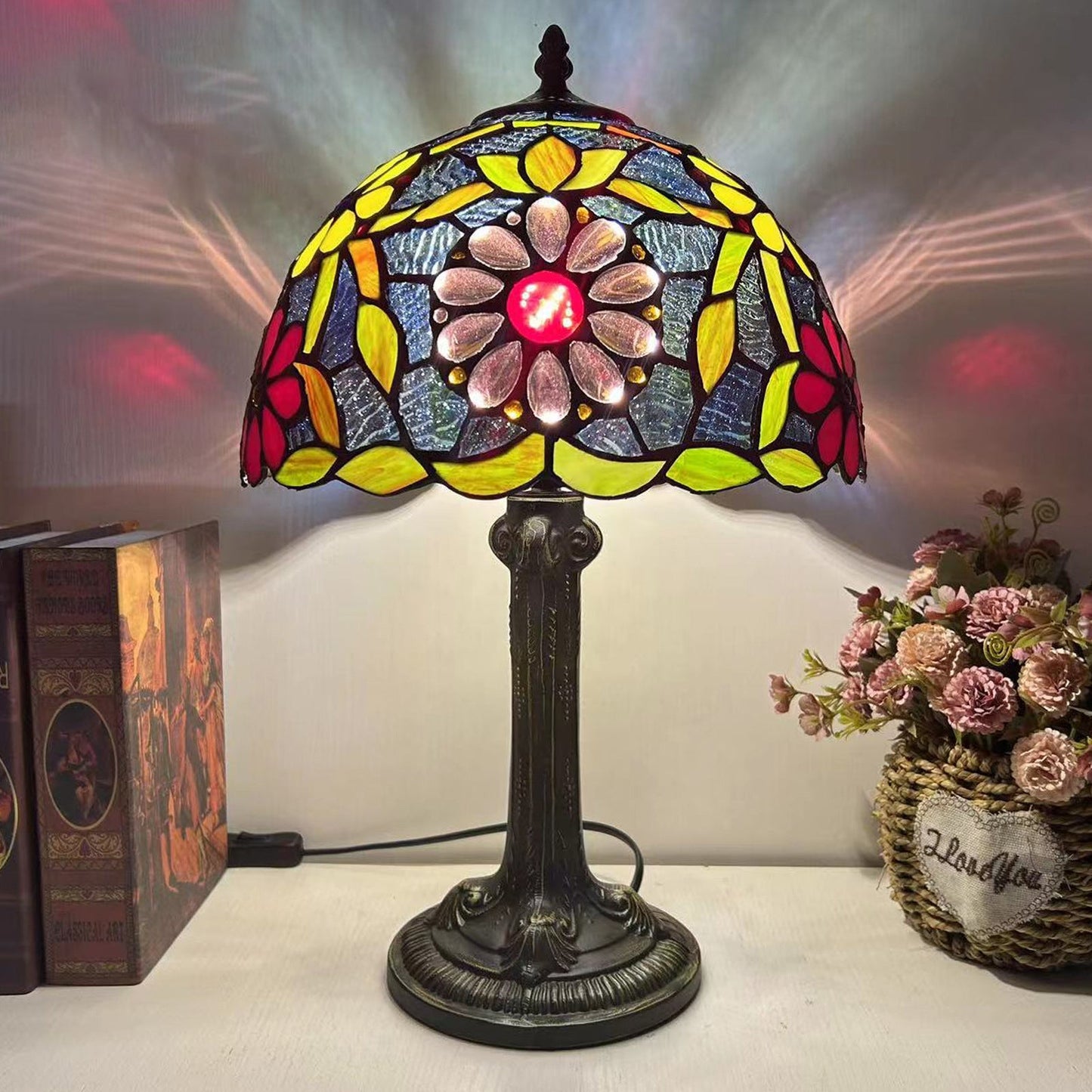 Traditional Tiffany Dome Flower Iron Glass 1-Light Table Lamp For Living Room