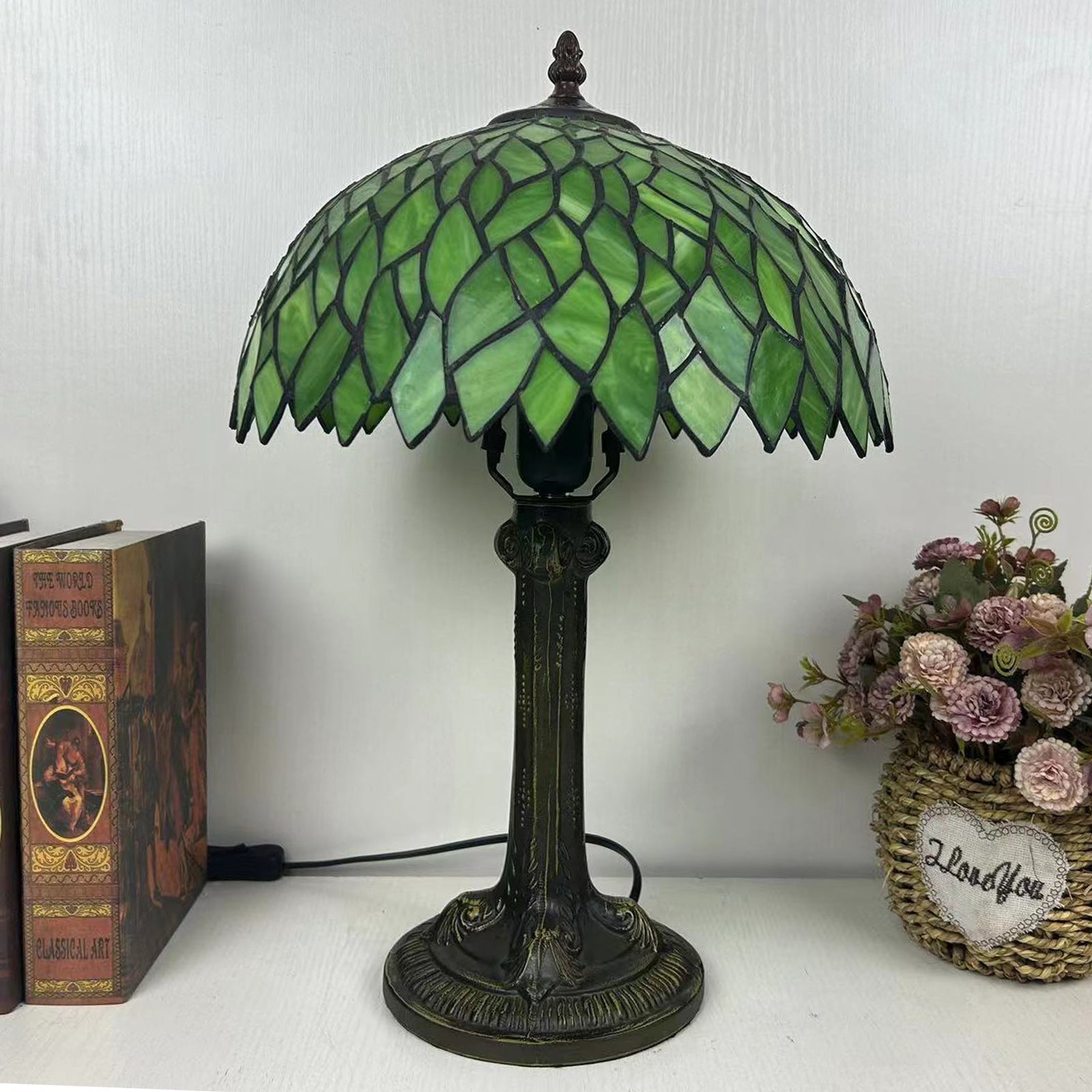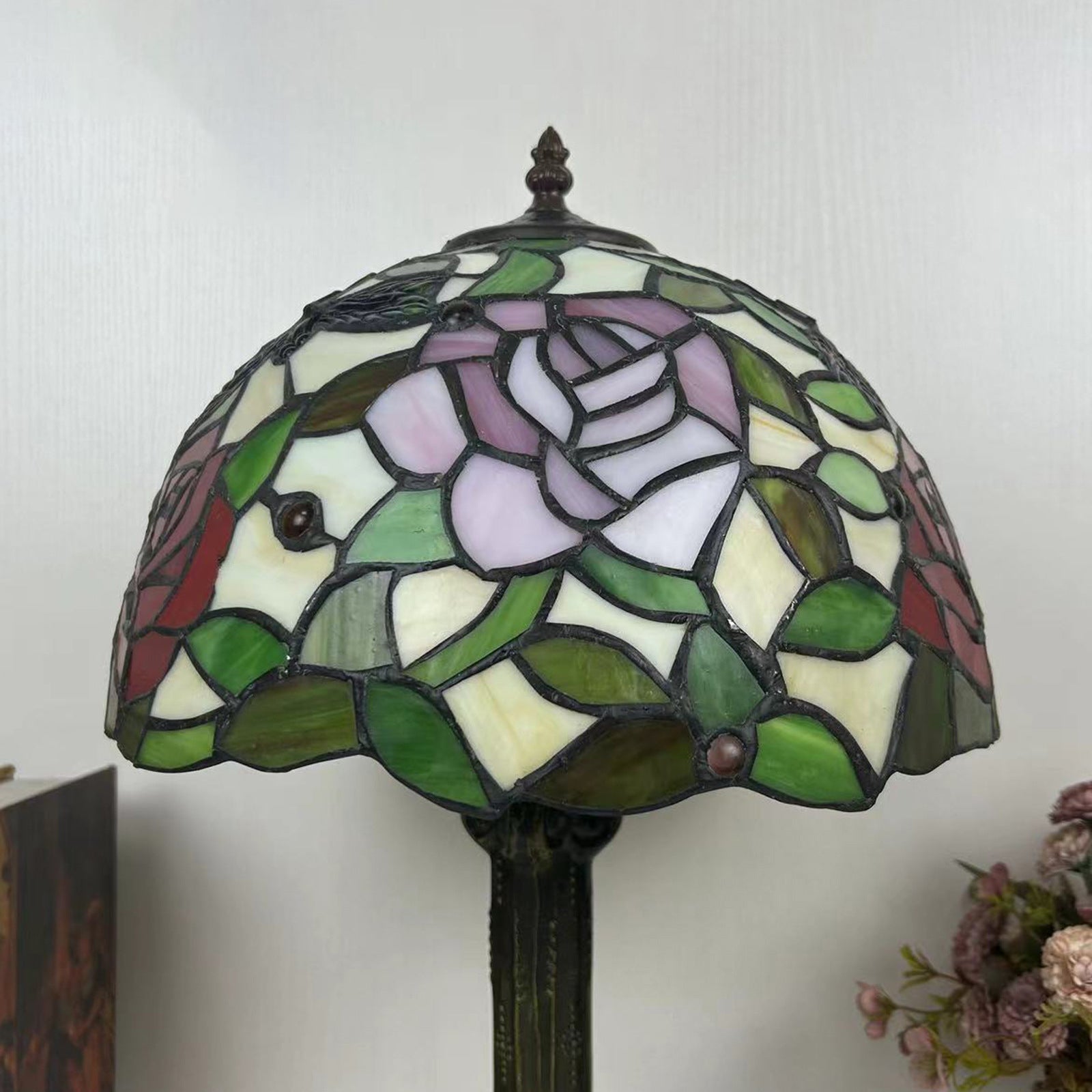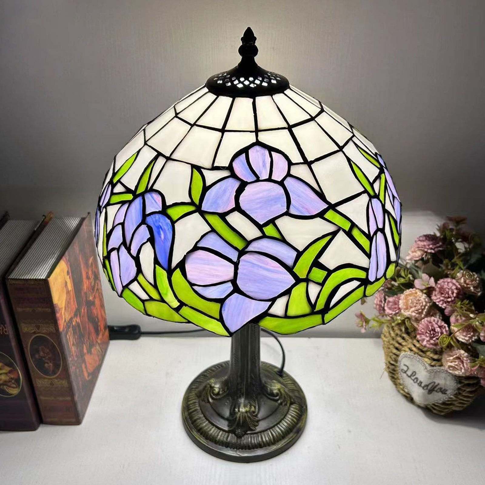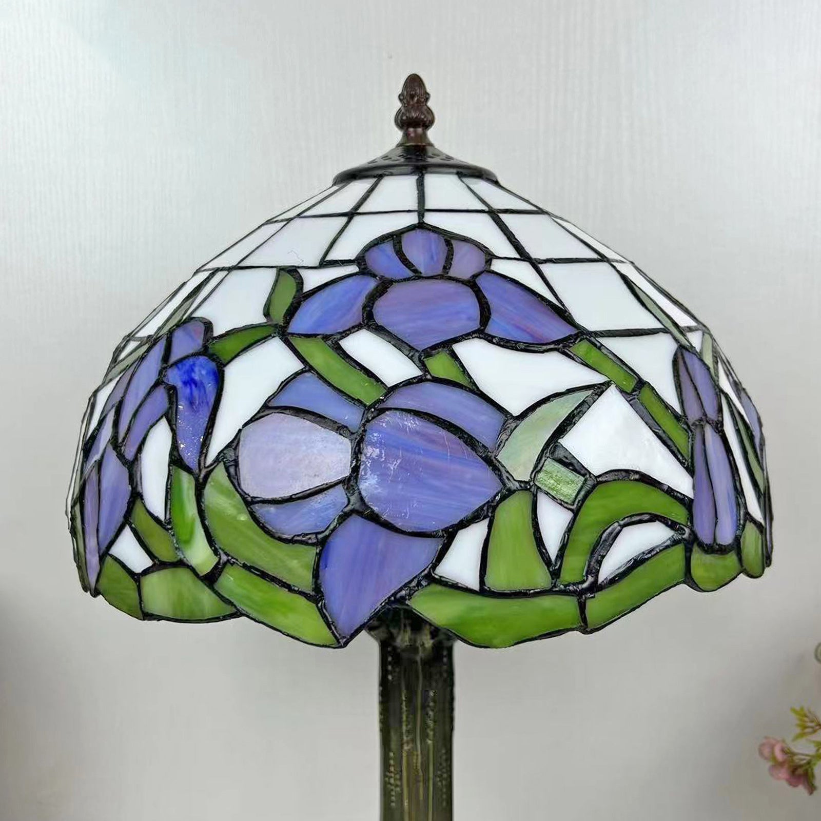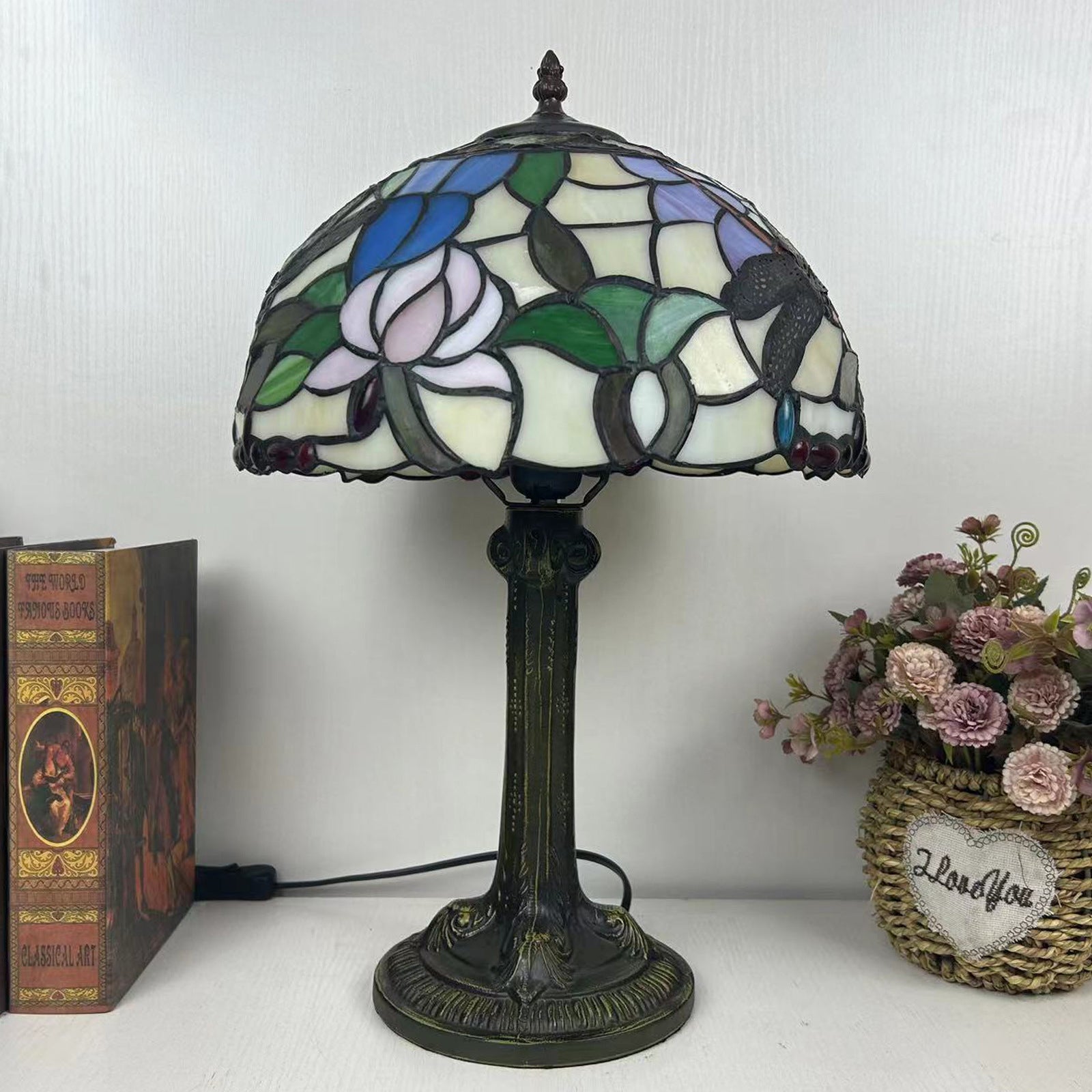 Traditional Tiffany Dome Flower Iron Glass 1-Light Table Lamp For Living Room