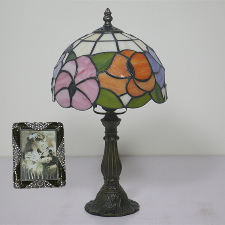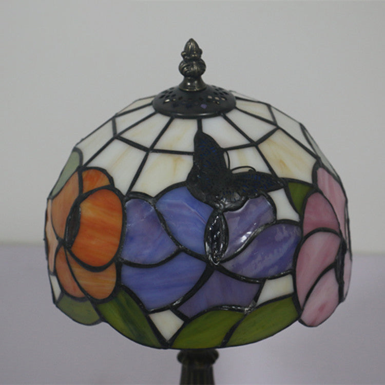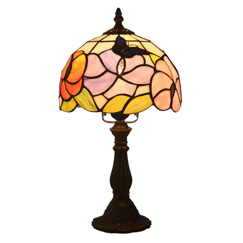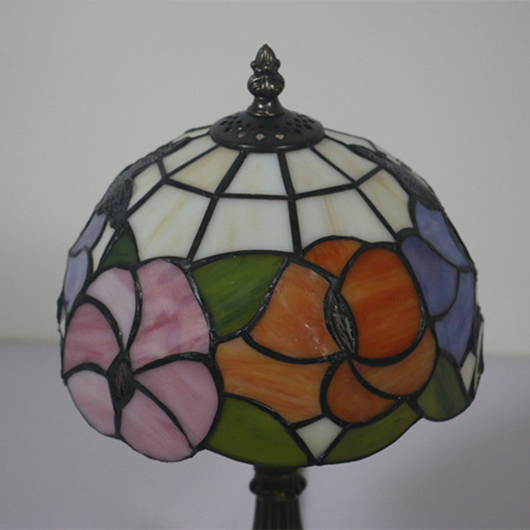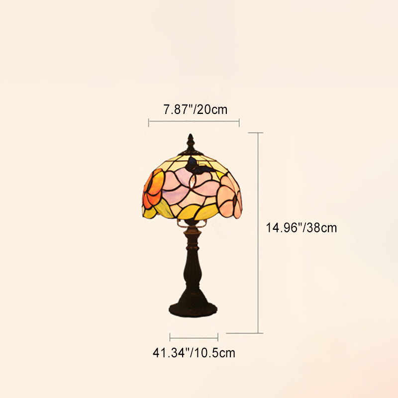 Traditional Tiffany Dome Flower Zinc Alloy Glass 1-Light Table Lamp For Bedside