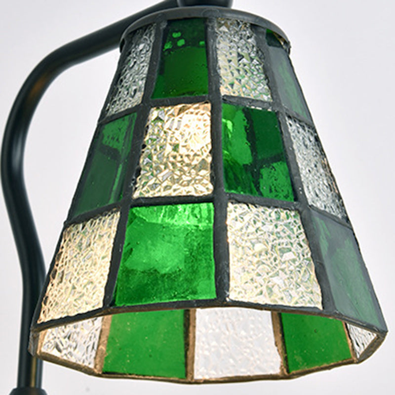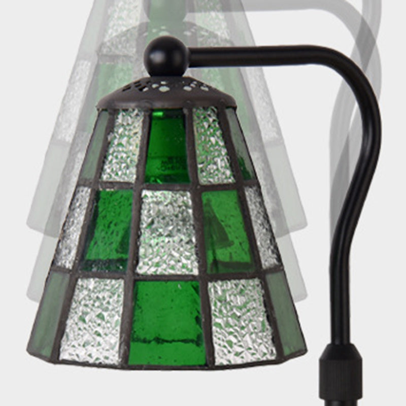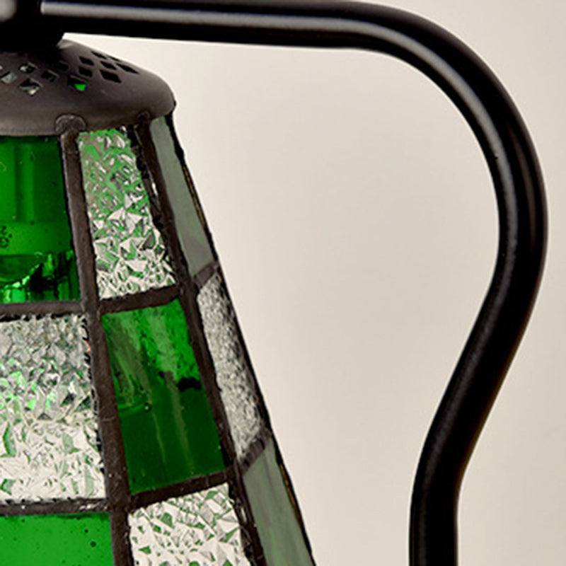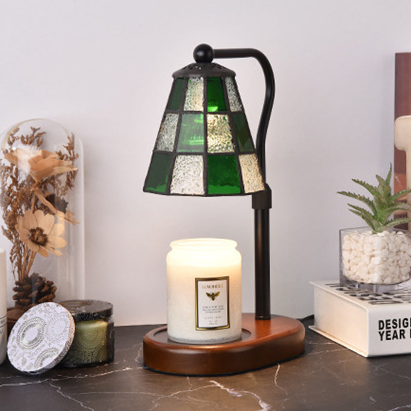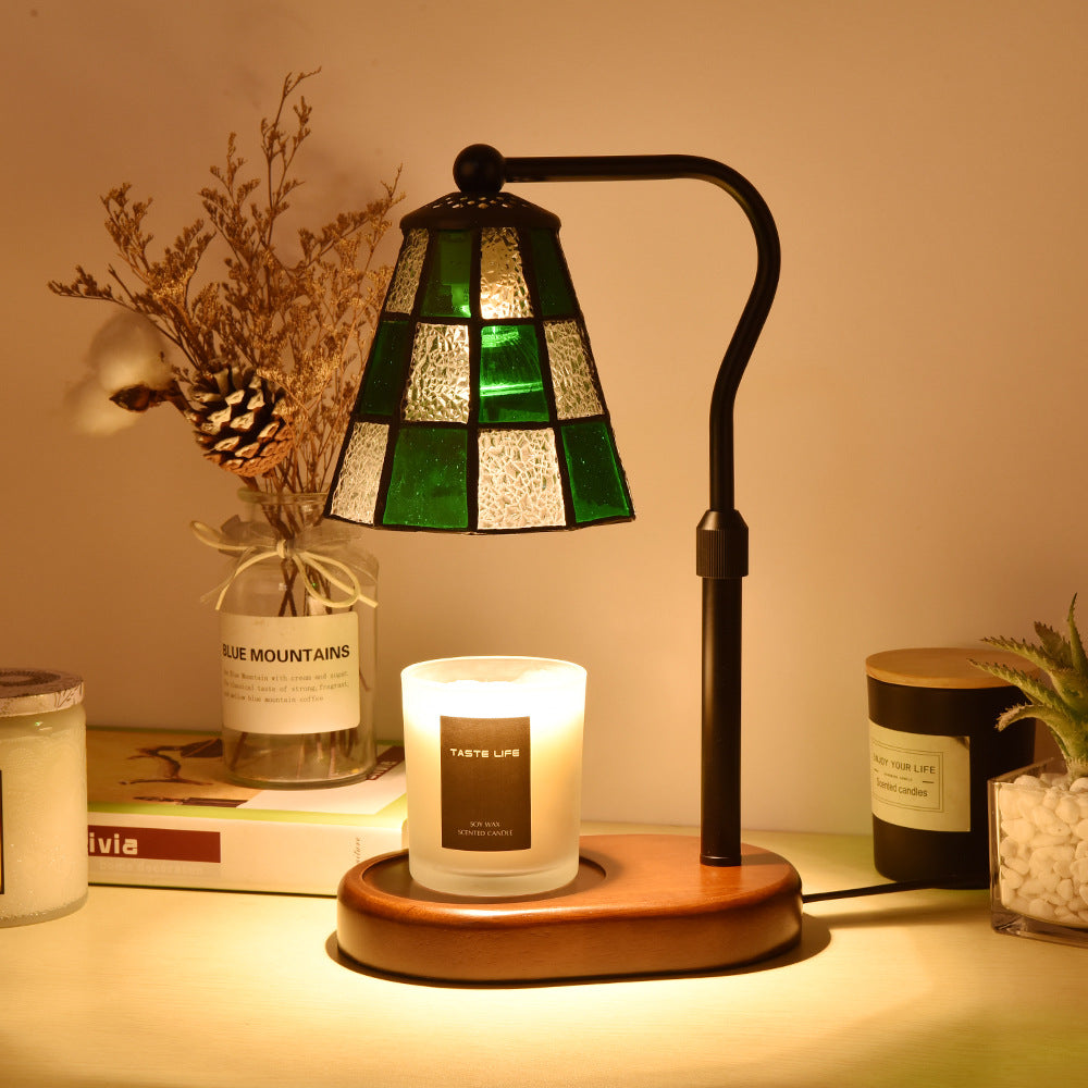 Traditional Tiffany Dome Glass Iron Wood 1-Light Melting Wax Table Lamp For Living Room