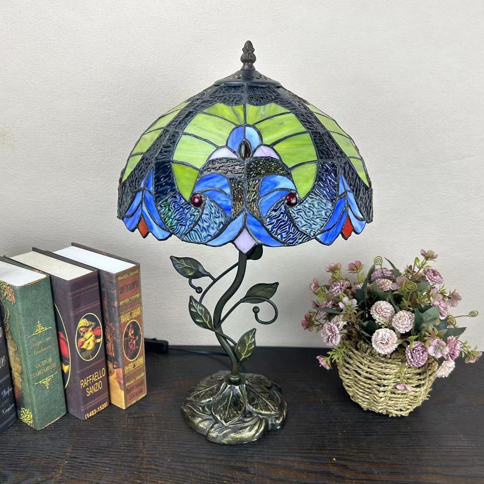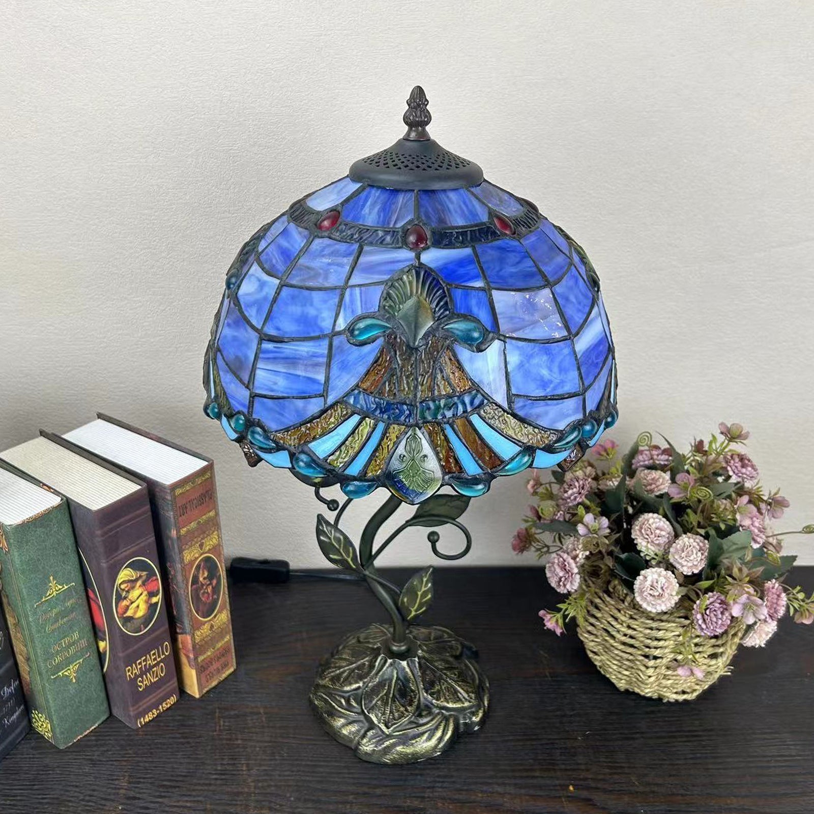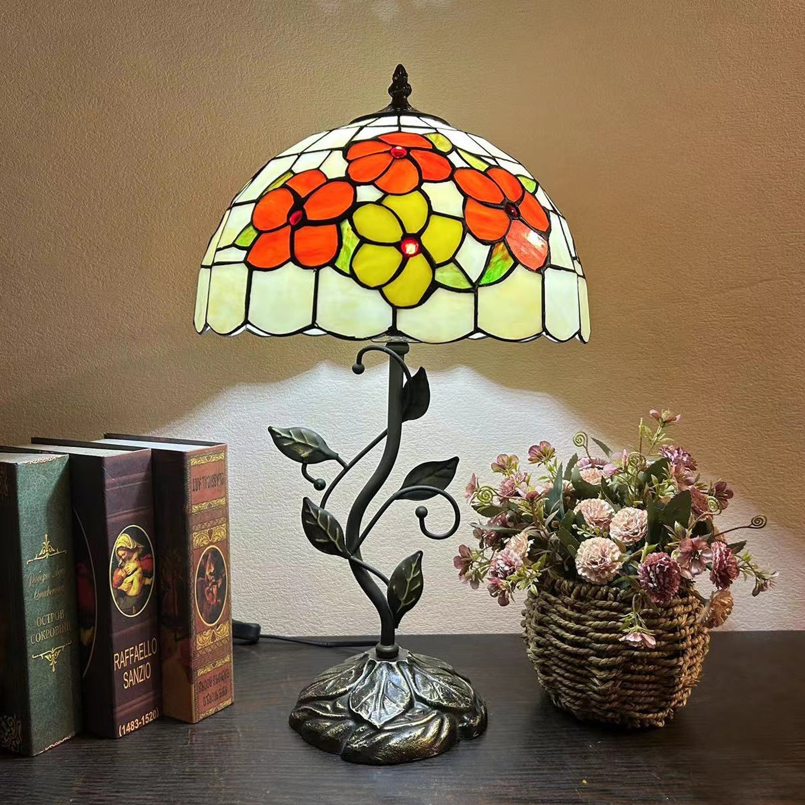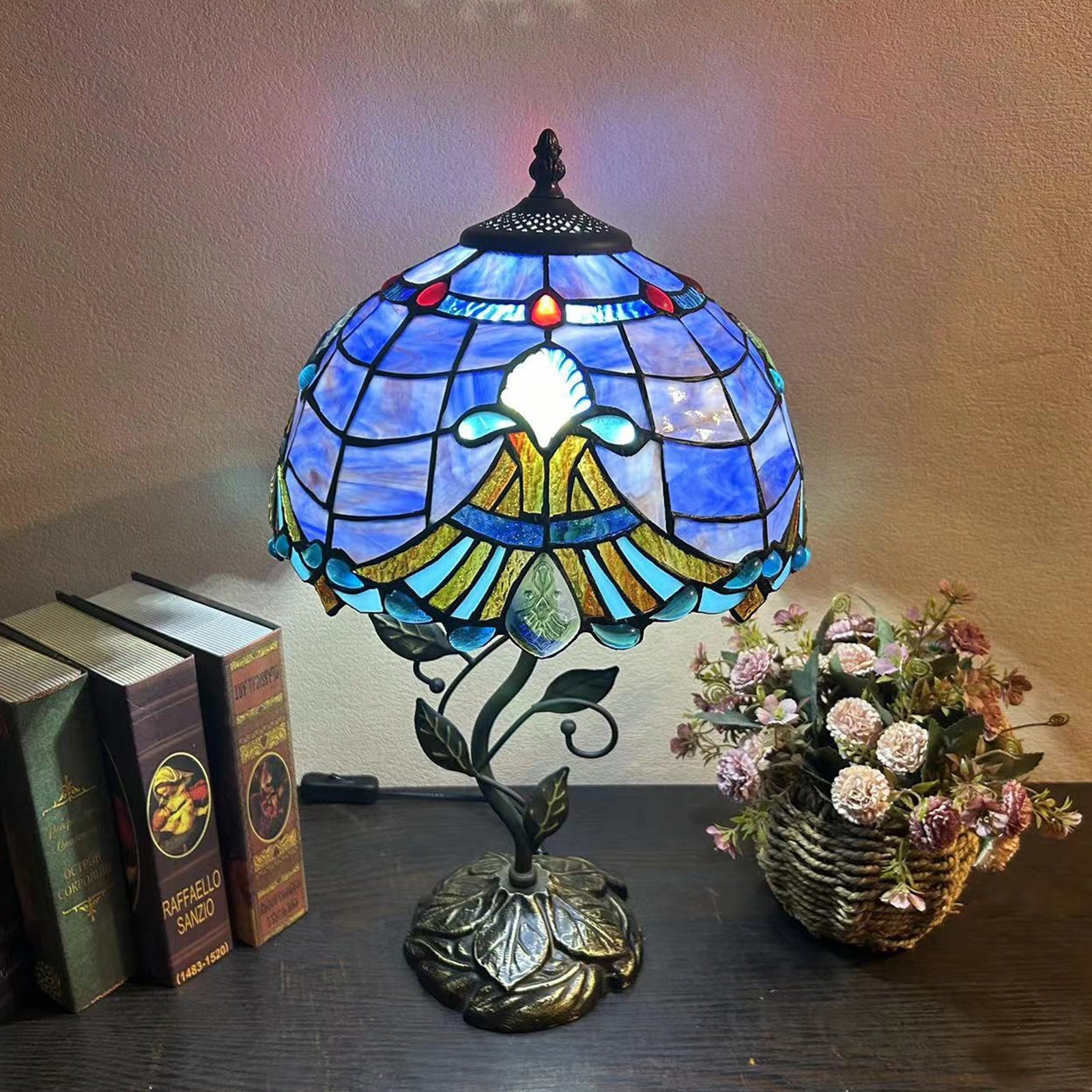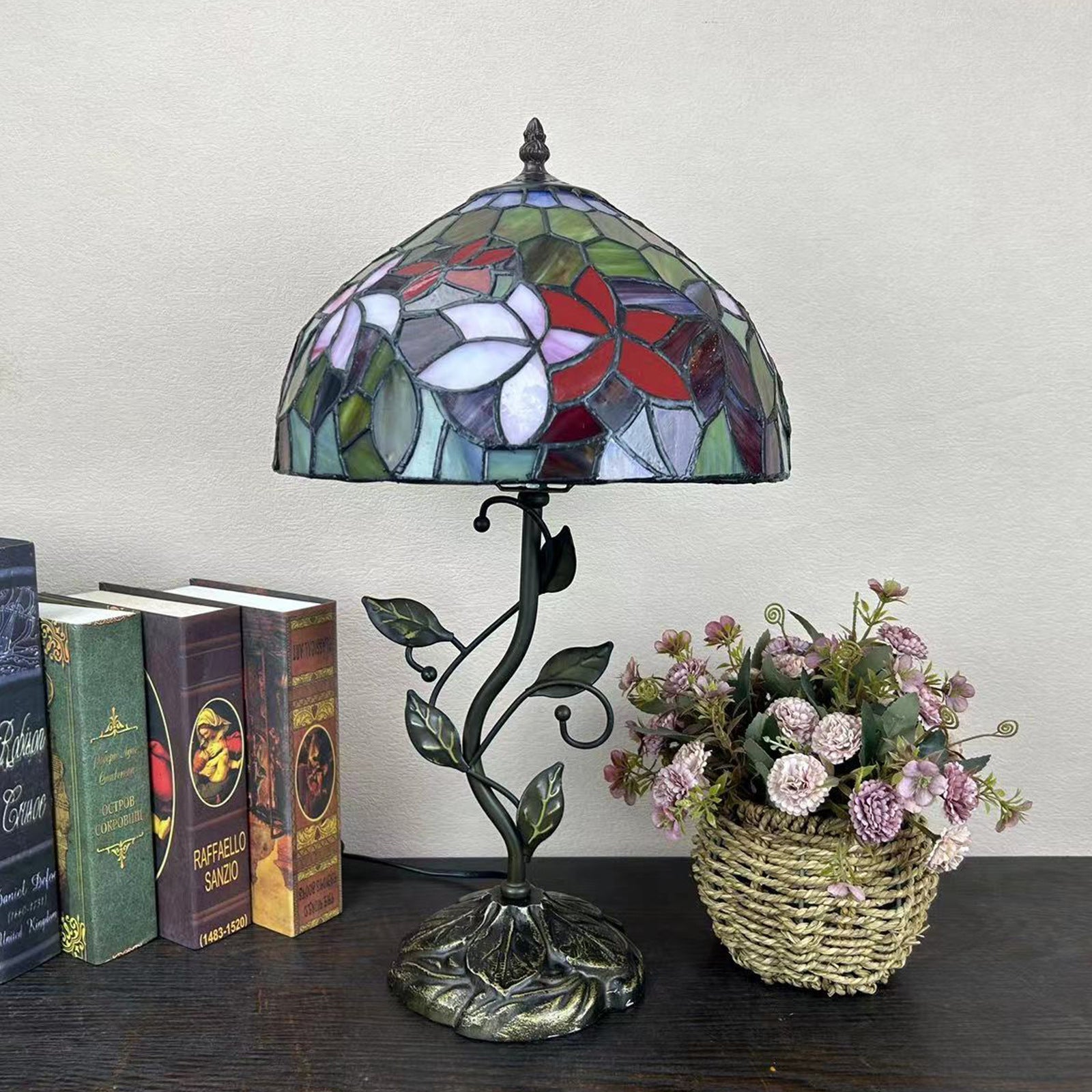 Traditional Tiffany Dome Iron Glass 1-Light Table Lamp For Living Room