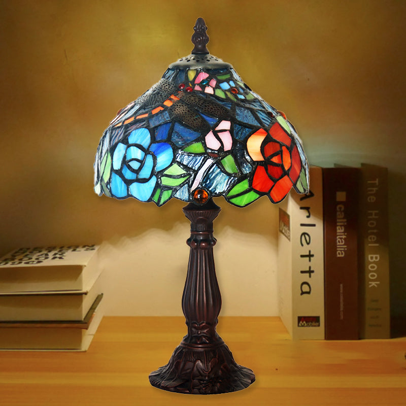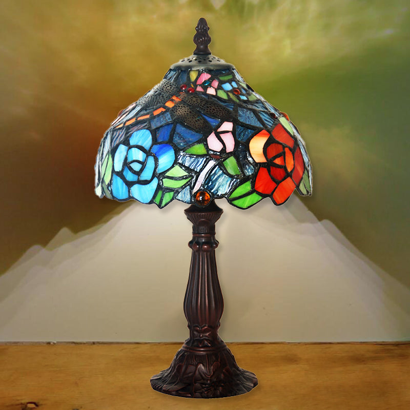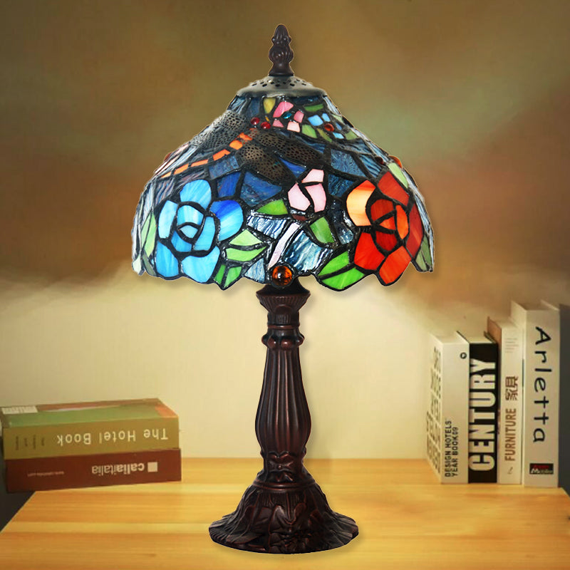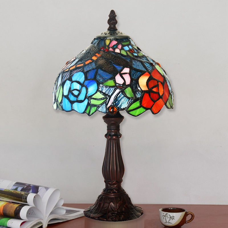 Traditional Tiffany Dome Iron Glass 1-Light Table Lamp For Living Room