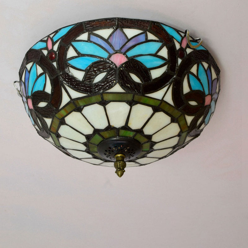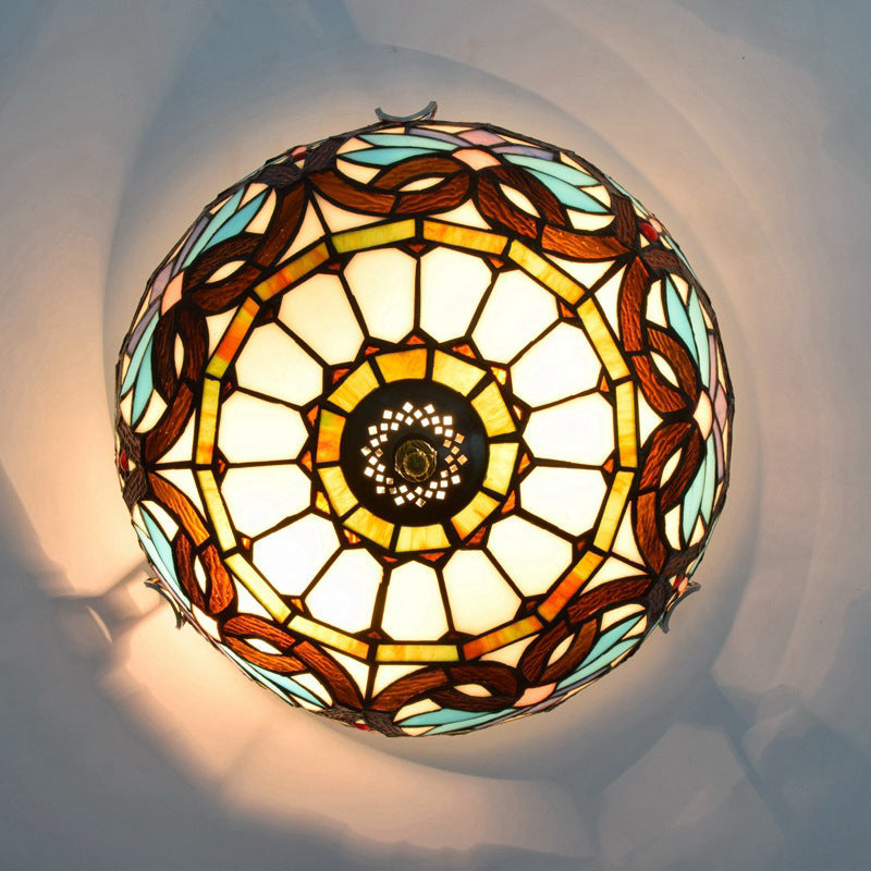 مصباح تيفاني تقليدي على شكل قبة حديدية زجاجية مزود بمصباحين مثبتين في غرفة المعيشة