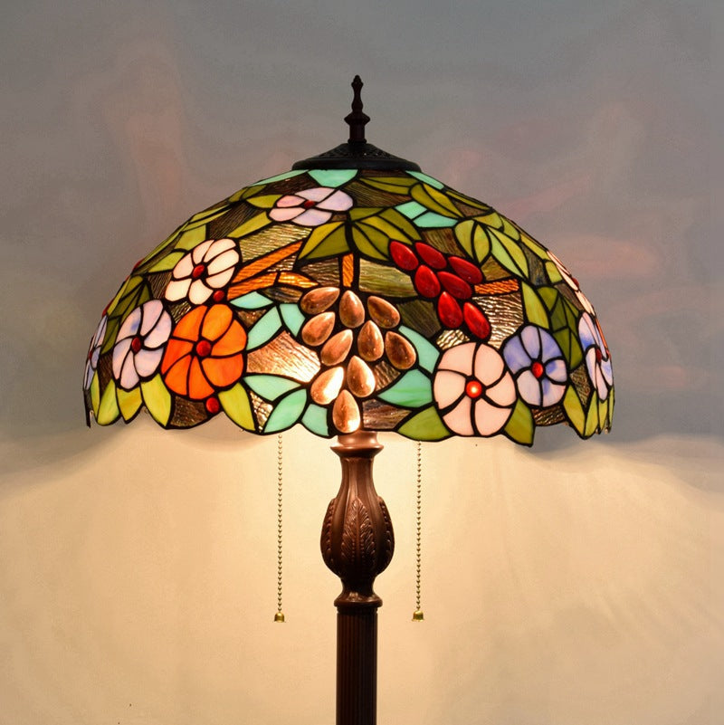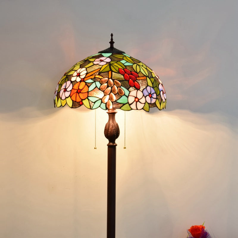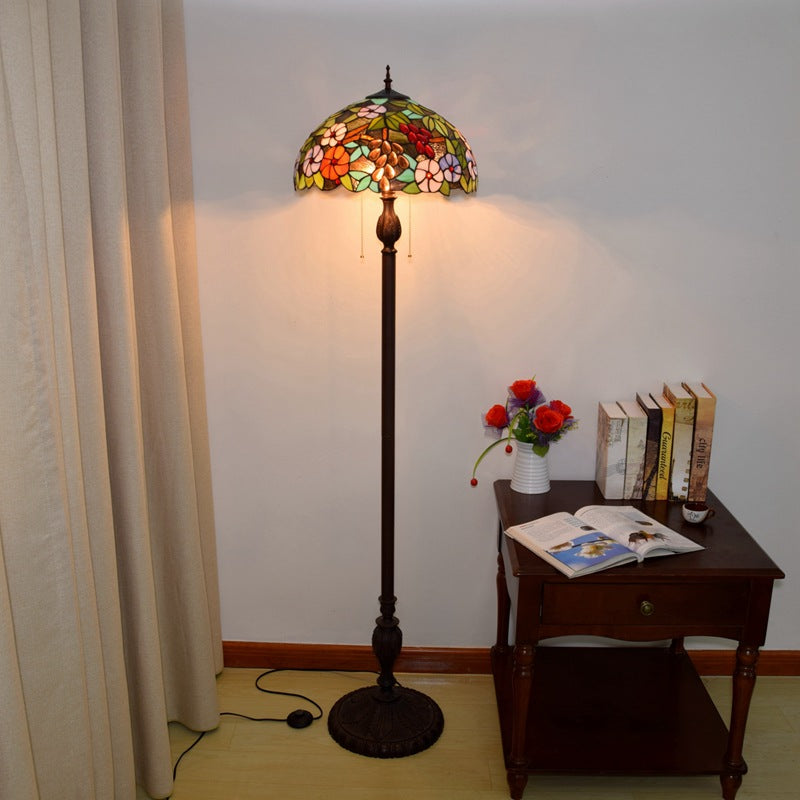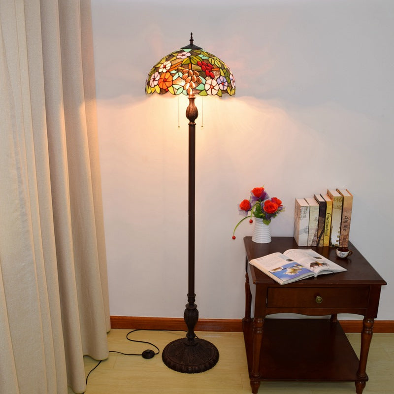 Traditional Tiffany Dome Iron Resin Glass 3-Light Standing Floor Lamp For Living Room