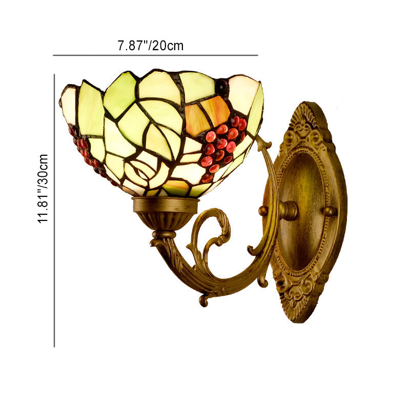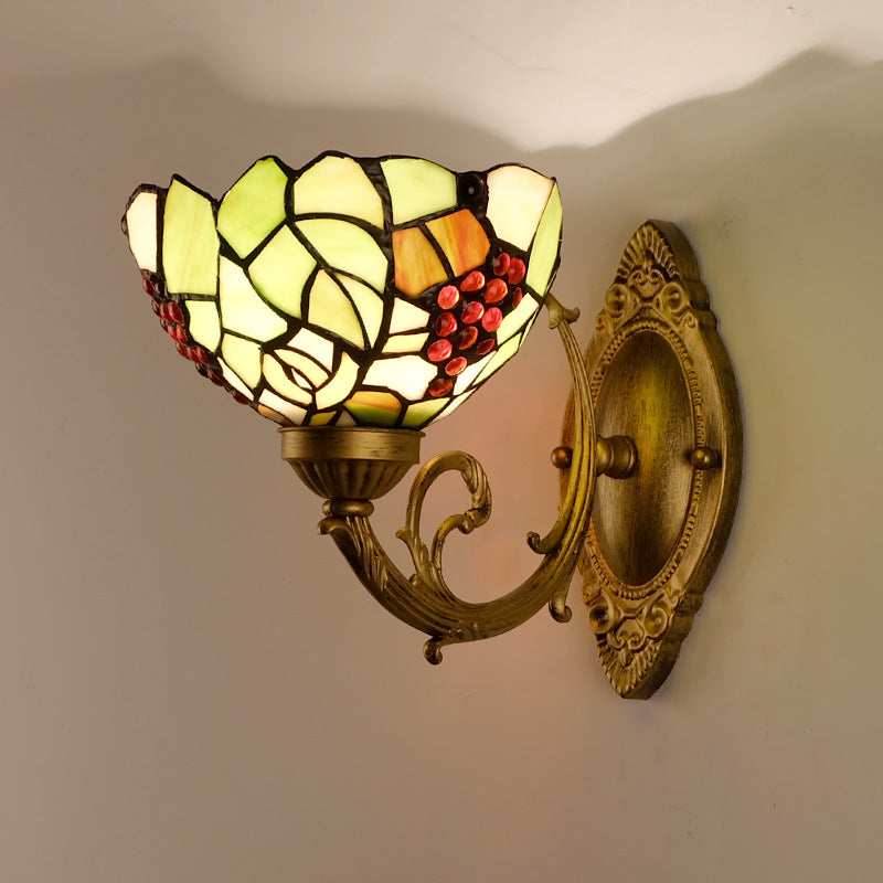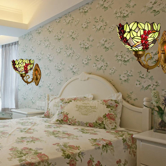 مصباح حائط تقليدي من الزجاج الملون من تيفاني بلون العنب، مزود بإضاءة واحدة، لغرفة النوم