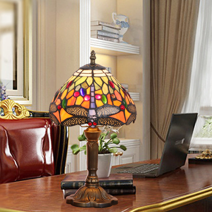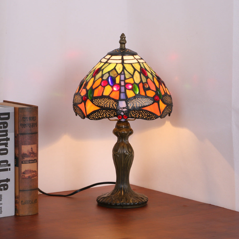 Traditional Tiffany Mushroom Resin Glass 1-Light Table Lamp For Bedroom