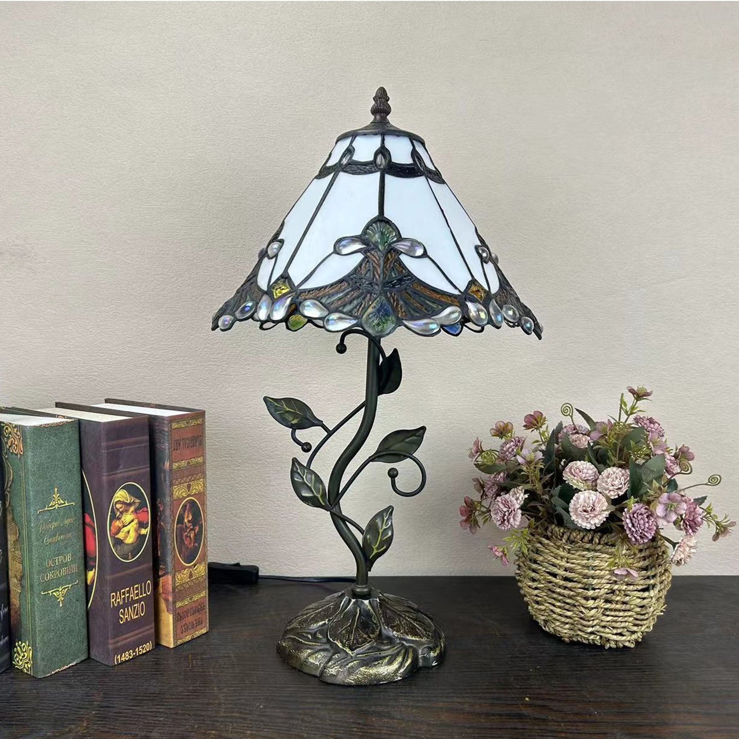 Traditional Tiffany Resin Glass Dome Conic Flower Leaf 1-Light Table Lamp For Bedside