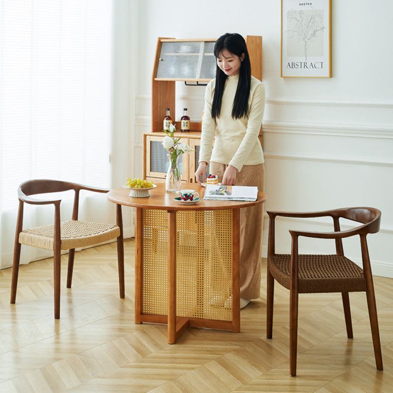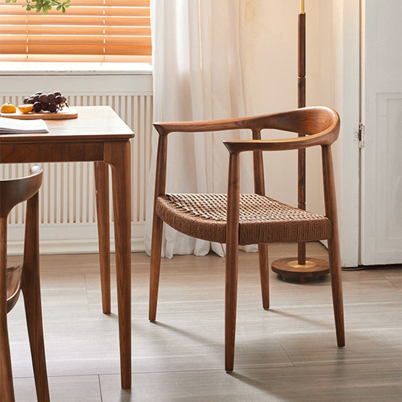 Traditional Vintage Braided Rope Wood Legs Square Dining Chair Backrest Armrest For Dining Room